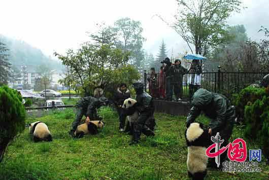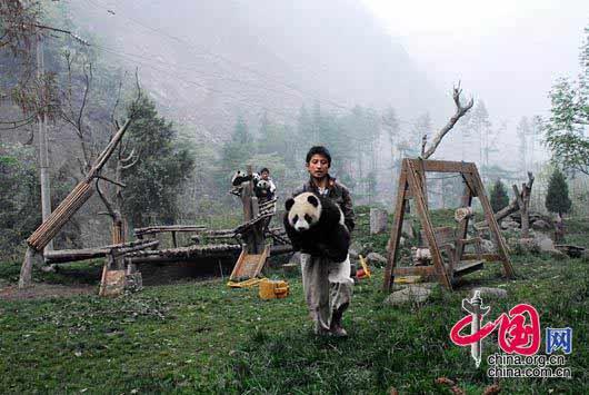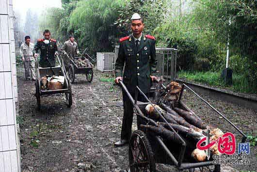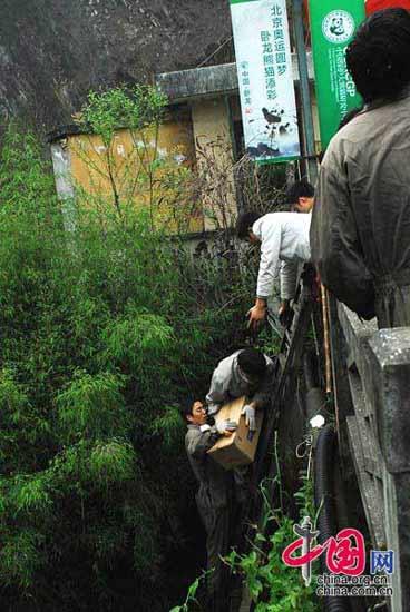 2008-05-12 18:07 臥龍人是這樣給熊貓運(yùn)送食物的。