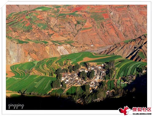 午餐后在駐地附近拍照、游覽。這里的土地是紅色的,有的田里剛剛長出綠色的莊稼,一道道彎彎的梯田被分割成了不同的顏色,即壯觀又漂亮。據(jù)說春節(jié)還不是紅土地最美的季節(jié),到了5.9.11月份,梯田里的莊稼開滿五顏六色的花朵,那才是紅土地最美麗的時(shí)刻。