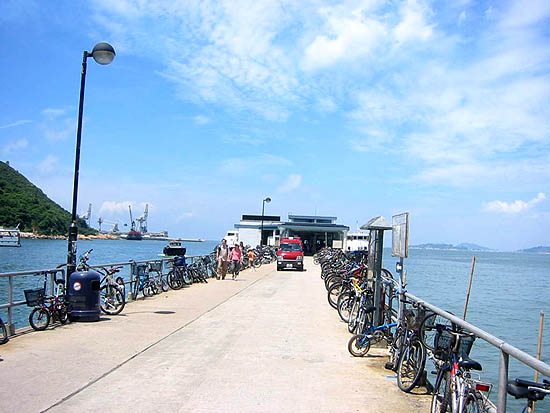 從中環(huán)五號碼頭乘“港九小輪”公司的渡輪到南丫島榕樹灣,只用了25分鐘。T型臺一樣探入海中的舊木板碼頭墩、漂在墩邊的小木船,明明白白是一幅安靜漁村的速寫。這種安靜和香港島的喧鬧形成巨大反差,吸引你不由自主地走向那靜謐的深處……