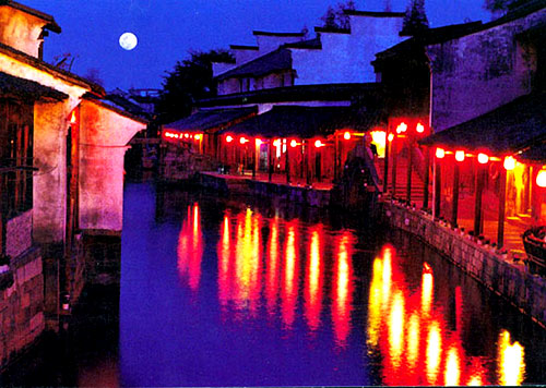 沒到烏鎮(zhèn)之前,曾經(jīng)幻想過,就這樣坐在夜色包圍的烏鎮(zhèn)水邊,靜靜的仰望這方山水人家的上空,會(huì)有多么美麗;現(xiàn)在,我來了……