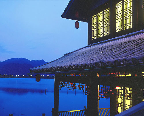 最婉約的還是河邊的那一座座古老的洗衣亭,婦女在井字形的石板條上搗衣洗菜,不必?fù)?dān)心受那日曬雨淋。一群白鵝在洗衣亭邊長滿水生植物的小河里悠然自得地鳧游。我們在河邊散步,晚霞朦朧,融化在靜靜的水色之中,形成一片泛泛的紅波。