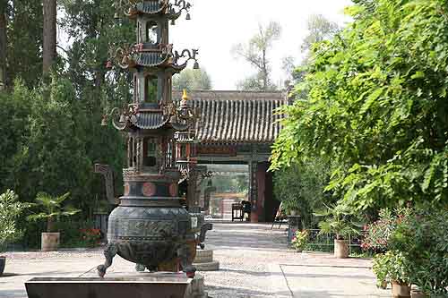海藏寺中各殿宇古色古香,香火繚繞,每逢農(nóng)歷節(jié)日都舉辦盛大的廟會。后庭院那成蔭的綠樹中,隱藏著歷史更為悠久的靈鈞臺,這座出名的古建筑早在兩晉十六國時,就已為前涼國王張茂所建。