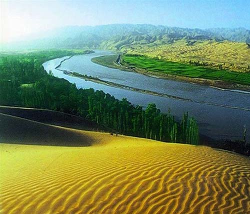 過了沙坡頭,成片的農(nóng)田忽然展現(xiàn)在眼前,那就是黃河養(yǎng)育的河套平原了。