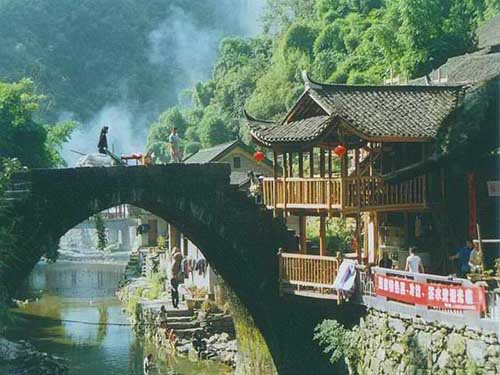 街上沒(méi)有幾個(gè)游人,我樂(lè)得安步當(dāng)車,邊走邊玩。當(dāng)然,當(dāng)年謝晉導(dǎo)演拍攝《芙蓉鎮(zhèn)》的主要場(chǎng)景胡玉音米豆腐店是一定要去的,一定要吃的還有那米豆腐。此時(shí)店里沒(méi)有一個(gè)顧客,門口擺著幾張方桌與長(zhǎng)凳,最引人注目的是店門口掛著的大幅《芙蓉鎮(zhèn)》劇照以及這里的老板娘和劉曉慶、姜文、謝晉等人的合影,仿佛要印證門口掛著的那塊大招牌“正宗113號(hào)米豆腐店”的真實(shí)性。紗櫥里擺著幾碗淺黃色的米豆腐,無(wú)精打采的,份量也明顯沒(méi)有電影里的那么足,價(jià)錢倒不貴,兩元一碗,要了一碗,老板娘將碗里的米豆腐在熱水里燙了燙,拌上點(diǎn)鹽、醬油、泡椒、蔥花之類的調(diào)料,入口后滋味卻一般,完全沒(méi)有想象之中的那般美味,也許,電影給人感官上的刺激也許會(huì)讓米豆腐變得好吃吧。