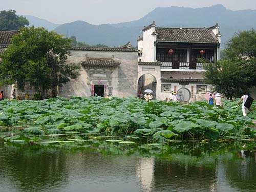 西遞原名西川,又稱西溪,是取村在三條溪水自東西流之意,后因其處于徽州府古驛道附近設(shè)有“鋪遞所”而改稱為西遞。這里群山環(huán)繞,風(fēng)景秀麗,錯落平面呈船型,占地16公頃。由于特定的人文地理和歷史條件,至今還保存有完整古樸的明清古民居100多幢。這些被稱為中國建筑史上的瑰寶之一的徽派建筑,依山傍水,錯落有致地呈現(xiàn)在這方天地,灰白色的墻、青黑色的瓦、飛翹的檐角、富有韻律的馬頭墻,遠(yuǎn)遠(yuǎn)地望去,在青山綠水的映襯下,秀美、恬靜、如歌如畫。