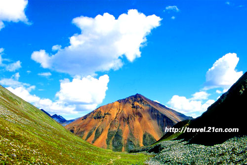 西藏的雨季,那一段路程,時(shí)陰時(shí)雨,偶爾也會(huì)現(xiàn)出一片藍(lán)天,灑下一片陽光。車在雨中向著一座七彩山行去,并不知道山的名字,但在陽光的照射下,發(fā)散著七彩的光芒,那是山的顏色,也是陽光的顏色,無法剝離。然后是一座火焰山,這樣稱呼它,是因?yàn)樗w紅褐色,孤傲地站立在群山之中,奇異的感覺。