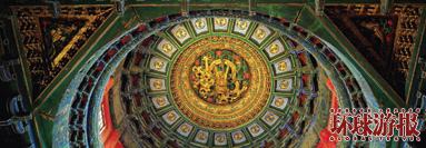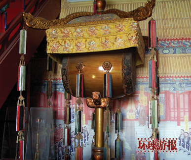 故宮里最吸引人的建筑是“三大殿”—太和殿、中和殿和保和殿。它們都建在漢白玉砌成的8米高的臺(tái)基上,遠(yuǎn)望猶如神話中的瓊宮仙闕。第一座大殿太和殿是最富麗堂皇的建筑,俗稱“金鑾殿”,是皇帝舉行大典的地方,殿高28米,東西63米,南北35米,有直徑達(dá)1米的大柱72根,其中6根圍繞御座的是瀝粉金漆的蟠龍柱。御座設(shè)在殿內(nèi)高2米的臺(tái)上,前有造型美觀的仙鶴、爐、鼎,后面有精雕細(xì)刻的圍屏。整個(gè)大殿裝飾得金碧輝煌,莊嚴(yán)絢麗。中和殿是皇帝去太和殿舉行大典前稍事休息和演習(xí)禮儀的地方。保和殿是每年除夕皇帝賜宴外藩王公的場(chǎng)所。