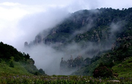 “千峰萬壑爭攢聚、云山幻影瞬息變”。王莽嶺由于獨特的地理位置,形成了極為罕見的自然景觀。逢雨天云霧迷漫,遠(yuǎn)山近峰時隱時