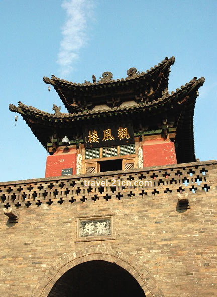 時(shí)間里,它斑駁了青磚砌裹的城墻,剝蝕了朱紅雕琢的城門(mén),干枯了南門(mén)外的兩眼水井,似乎一直在等這樣一個(gè)初秋的黎明,萍水相逢著我這樣一個(gè)孤獨(dú)的游者。于是,我在平遙觀望古城墻,古城墻在冷峻中審視著我。