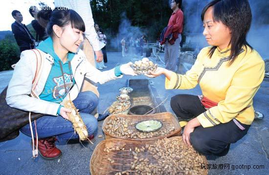 不過,雖然是老天爺?shù)腻仯覀兎踩艘部梢圆潼c(diǎn)熱氣。用大滾鍋的熱氣蒸的雞蛋、花生、小土豆現(xiàn)蒸現(xiàn)吃,味道非常好。曾經(jīng)住附近的村民太幸福了,都不需要爐灶也不需要買煤氣,每天要吃飯就帶好東西來這里野餐。不過這里的水不能直接飲用,所以只能蒸不能煮,只有老天爺才能喝“熱海大滾鍋牛肉湯”。雖然不能喝,拿滾鍋水來泡腳、拿地?zé)醽碚裟_還是不錯(cuò)的,還可治風(fēng)濕、清潔皮膚、軟化角質(zhì)?嗯,一定要泡泡,雙腳美美夏天才能穿漂亮的高跟鞋。不過,泡腳請一定記得摻點(diǎn)涼水哦。