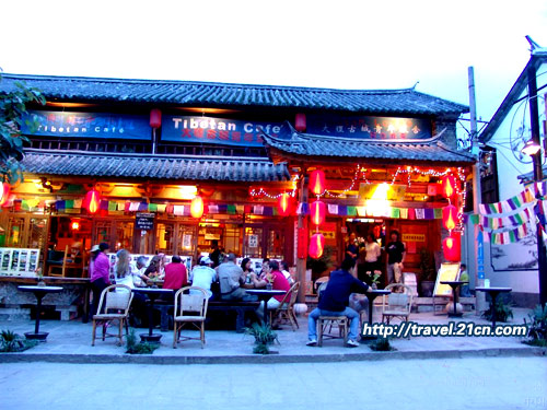 穿行在大理,你可隨意用腳丈量著古老的街巷,也可在街頭一角的小攤上,拿一個餌塊或乳扇,邊走邊吃,可靠在一家書店隨意地翻看著一本閑書,或者干脆無所事事,就做一次閑人;在秋日的陽光下,無思無想無夢……在大理,一個不可錯過的去處就是人稱“洋人街”的護國路。當城市化成為人類社會的主導方式時,“洋人街”上坐著的這些人偏就向往著田園牧歌。一本閑書,一張報紙,懶懶地沐浴著冬陽;穿著丁恤衫的高大美國姑娘,背著背包在無目的地張望……街上酒吧、餐館、商店林立,風格各異。酒吧的主人,更多的時候是和客人聊天,順手做做生意。南來北往的游人一旦踏上古城,也好像變得沒有了喧囂和浮躁,靜靜地走在石板路上,雖是異鄉(xiāng),卻沒有離家的惆悵,只聽到自己的腳步,在安靜的街道上發(fā)出輕微的回響……懷揣著無數的故事與傳說,在南詔故國悠遠的刀光劍影之后依然透出幾分風雅,大理更令人動容的,是那份始終藏在凡塵俗世之后的從容與平和。