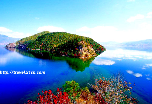 在沒(méi)有去瀘沽湖之前,總會(huì)使我對(duì)瀘沽湖產(chǎn)生無(wú)限的遐想:蔚藍(lán)的天空飄浮著朵朵白云,青翠的山巒環(huán)抱著平滑如鏡的湖水,美麗的海藻花在湖上隨波蕩漾--這是一個(gè)世外桃園,一個(gè)讓多少紅塵中人眷戀的美麗夢(mèng)境!