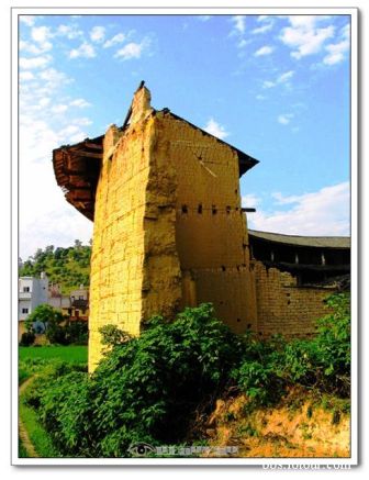 客家文化的積淀也無(wú)法更改歲月對(duì)土樓的風(fēng)化與人為的破壞,斷臂殘?jiān)诟呖障赂@得歷史滄桑。