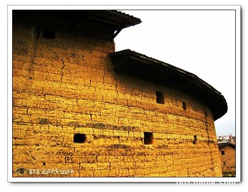 上饒樓位于饒平北部山區(qū)的上饒鎮(zhèn),建于乾隆三十八年,整體高三層半,圓形。圍墻大部分是用黃泥土夯成,打上粘糯米的汁液,使墻體的質(zhì)地異常的堅(jiān)硬。圍墻的厚度最厚可達(dá)一米五之多,開(kāi)個(gè)窗戶能躺兩個(gè)五六歲的小孩子。