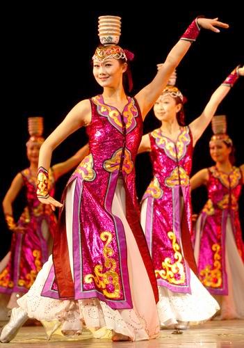 蒙古族是能歌善舞的民族。蒙古族舞蹈的特點是節(jié)奏明快,熱情奔放,語匯新穎,風格獨特。動作多以抖肩、翻腕來表現(xiàn)蒙古族姑娘歡快優(yōu)美,熱情開朗的性格。男子的舞姿造型挺拔豪邁,步伐輕捷灑脫,表現(xiàn)出蒙古族男性剽悍英武,剛勁有力之美。蒙古族舞蹈久負盛名,傳統(tǒng)的馬刀舞、鄂爾多斯、筷子、安代、布利亞特婚祀、馴馬手、小青馬、盅碗舞等,節(jié)奏歡快、舞步輕捷,都表現(xiàn)出了蒙古族勞動人民純樸、熱情、精壯的健康氣質。保留節(jié)目有筷子舞、馬刀舞、馴馬舞、盅碗舞、擠奶員舞、鷹舞、牧民的喜悅、祝福鼓舞等。