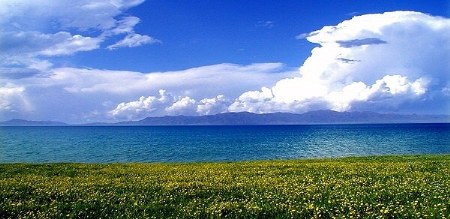 對塞里木湖產(chǎn)生的點點幻想開始于飛機上一個軍嫂的介紹。盡管知道塞里木湖地處新疆素有江南之稱的伊犁地區(qū),但是還是想象不出來它怎么能像是眼前這位軍嫂所說的,簡直能與杭州的西湖所媲美。于是,腦子里先是展現(xiàn)出了西湖的美麗景色。