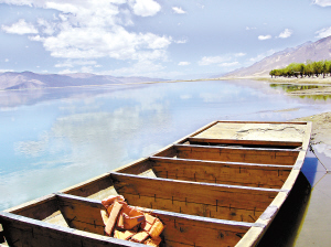 陽光很強(qiáng)烈,不時(shí)把手探入江水中,顯得格外的涼爽。耳邊突然響起了才旦卓瑪清亮不羈、帶有原始野性的聲音:“雪山啊,閃銀光,雅魯藏布江,翻波浪……”高山白云倒映在江水中,加上沙洲上的水鳥……美如畫。而船不時(shí)激起的波浪,又讓這幅美景也波動(dòng)起來,人就更容易醉了。