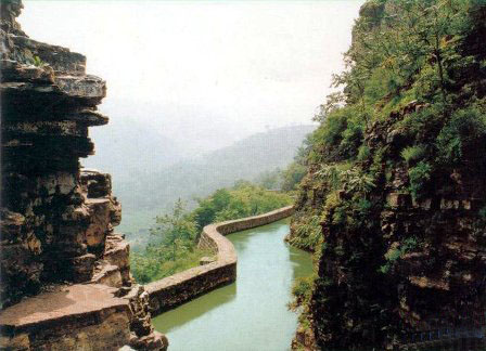 紅旗渠在安陽以西50多公里的林州林濾山中,地勢險峻,工程宏偉。它不僅是造福人民的水利工程,也為林濾山自然風光增添了一大勝景,被中外游人譽為“人工天河”、“當代萬里長城”、“世界第八大奇跡”。20世紀70年代初,紅旗渠工程竣工后,周恩來總理自豪地告訴國際友人:“新中國有兩個奇跡,一個是南京長江大橋,一個是林縣紅旗渠”。