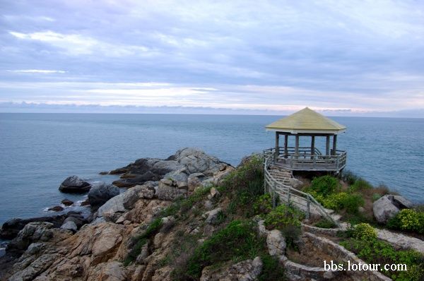 這里是看海的天堂,人很少,在這里,一個(gè)人呆呆的看海,有意脫俗的感覺(jué),兩個(gè)人的話,可以背靠背,聽浪聲、聽海聲、聽風(fēng)聲,感覺(jué)很妙,而且可供看海的時(shí)間和地點(diǎn)很多:巖石看海、山頂看海、觀海亭看海、潮退看海、沙灘看海、漁船看海、摩托艇看海、拖傘看海、碼頭看海!