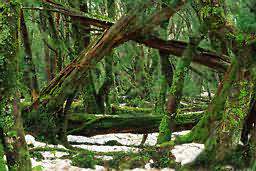 雨林中,木質(zhì)藤本植物隨處可見,有的粗達20至30厘米,長可達300米,沿著樹干、枝椏,從一棵樹爬到另外一棵樹,從樹下爬到樹頂,又從樹頂?shù)箳煜聛,交錯纏繞,好象一道道稠密的網(wǎng)。附生植物如藻類、苔蘚、地衣、蕨類以及蘭科植物,附著在喬木、灌木或藤本植物的樹干和枝椏上,就象披上一厚厚的綠衣,有的還開著各種艷麗的花朵,有的甚至附生在葉片上,形成“樹上生樹”、“葉上長草”的奇妙景色。有些種類的樹干基部常會長出多姿多態(tài)的板狀根,從樹干的基部2至3米處伸出,呈放射狀向下擴展。有些則生長著許多發(fā)達的氣根,這些氣根從樹干上懸垂下來,扎進土中后,還繼續(xù)增粗,形成了許許多多“樹干”,大有一木成林的氣勢,非常壯觀。有些種類的樹如波羅蜜、可可等,在老樹樹干或根頸處也能開花結(jié)果,成為熱帶雨林中特有的老莖生花現(xiàn)象。