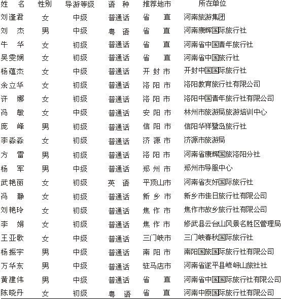 附件:“河南省模范導游員”名單