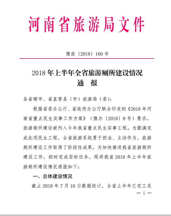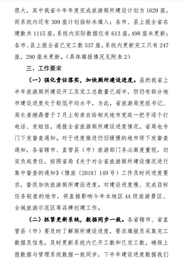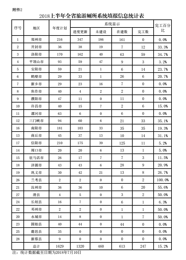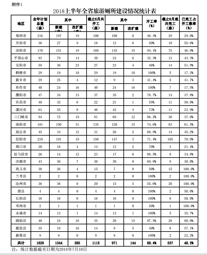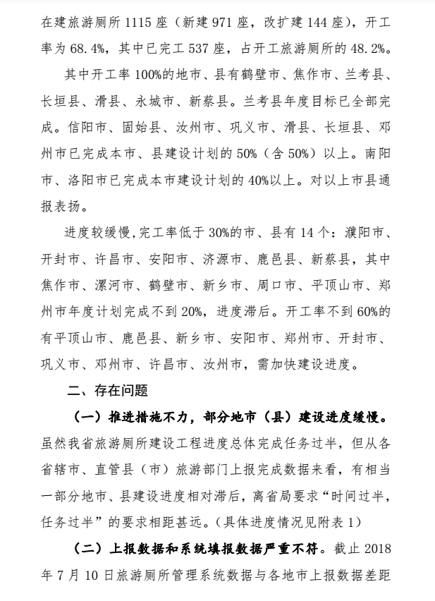 2018年上半年全省旅游廁所建設(shè)情況通報