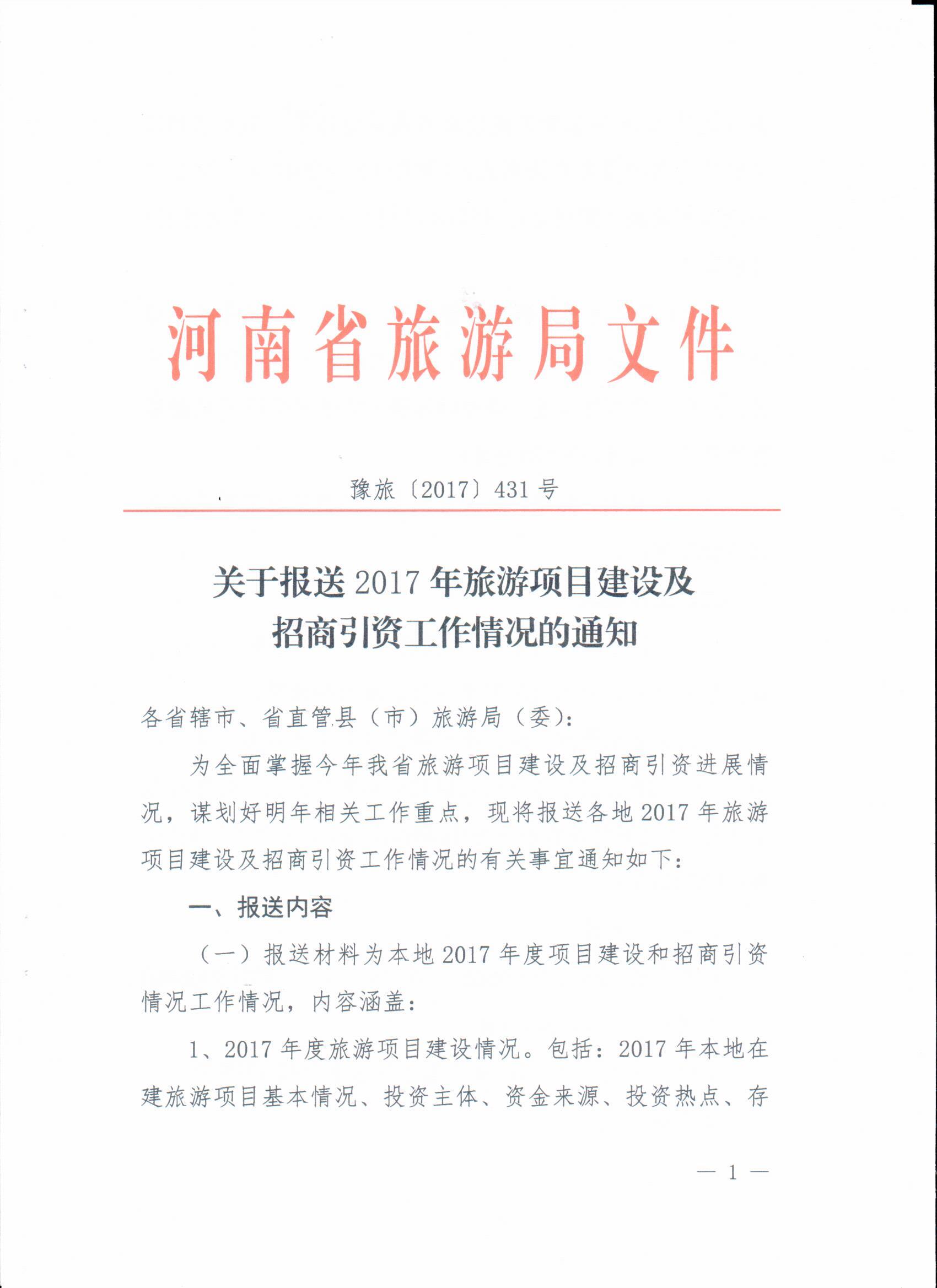 關(guān)于報(bào)送2017年旅游項(xiàng)目建設(shè)及招商引資工作情況的通知