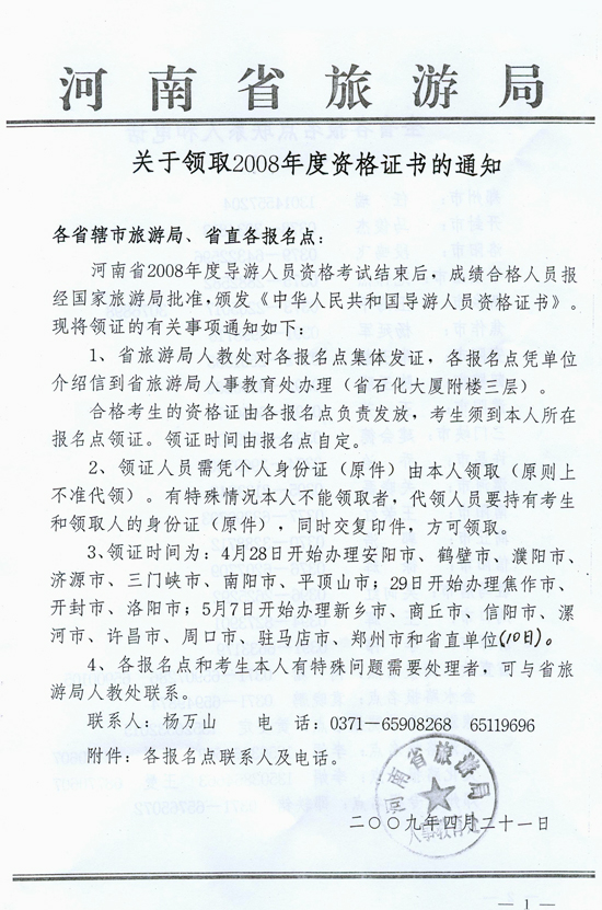 關于領取2008年度導游資格證書的通知