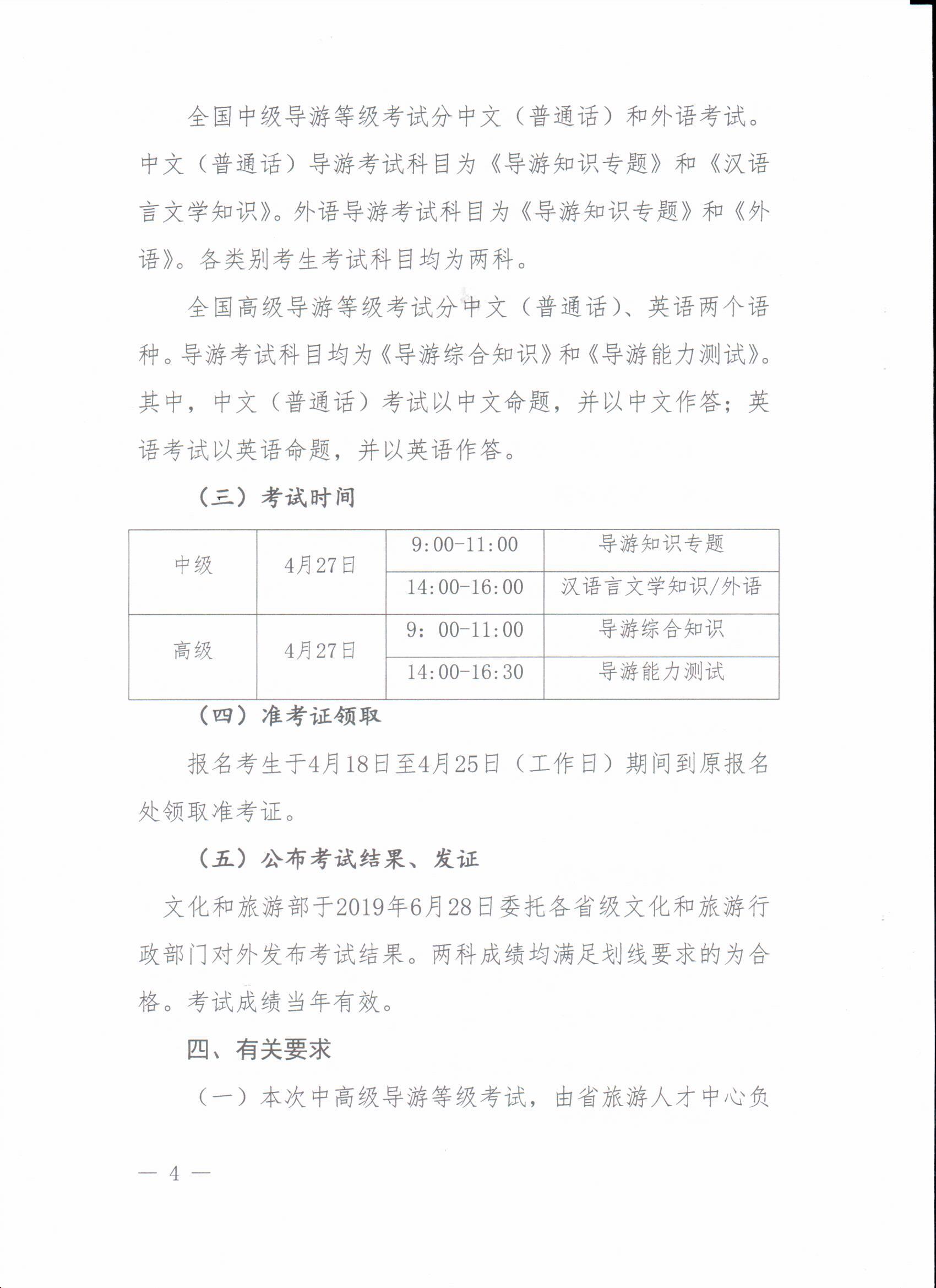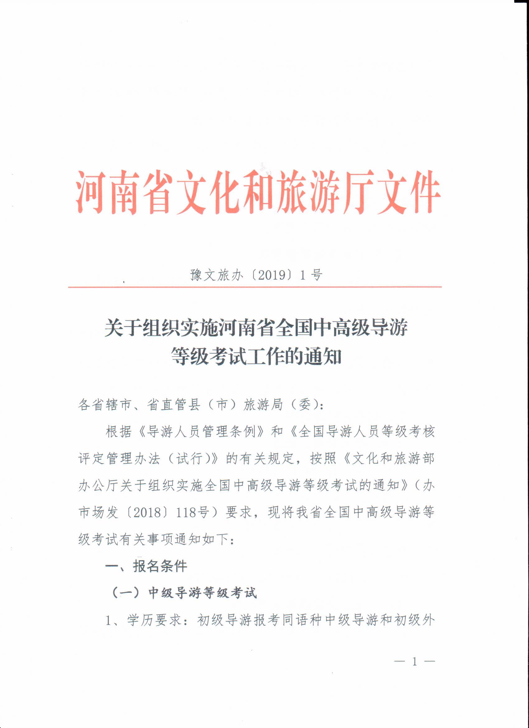 關(guān)于組織實(shí)施河南省全國(guó)中高級(jí)導(dǎo)游等級(jí)考試工作的通知