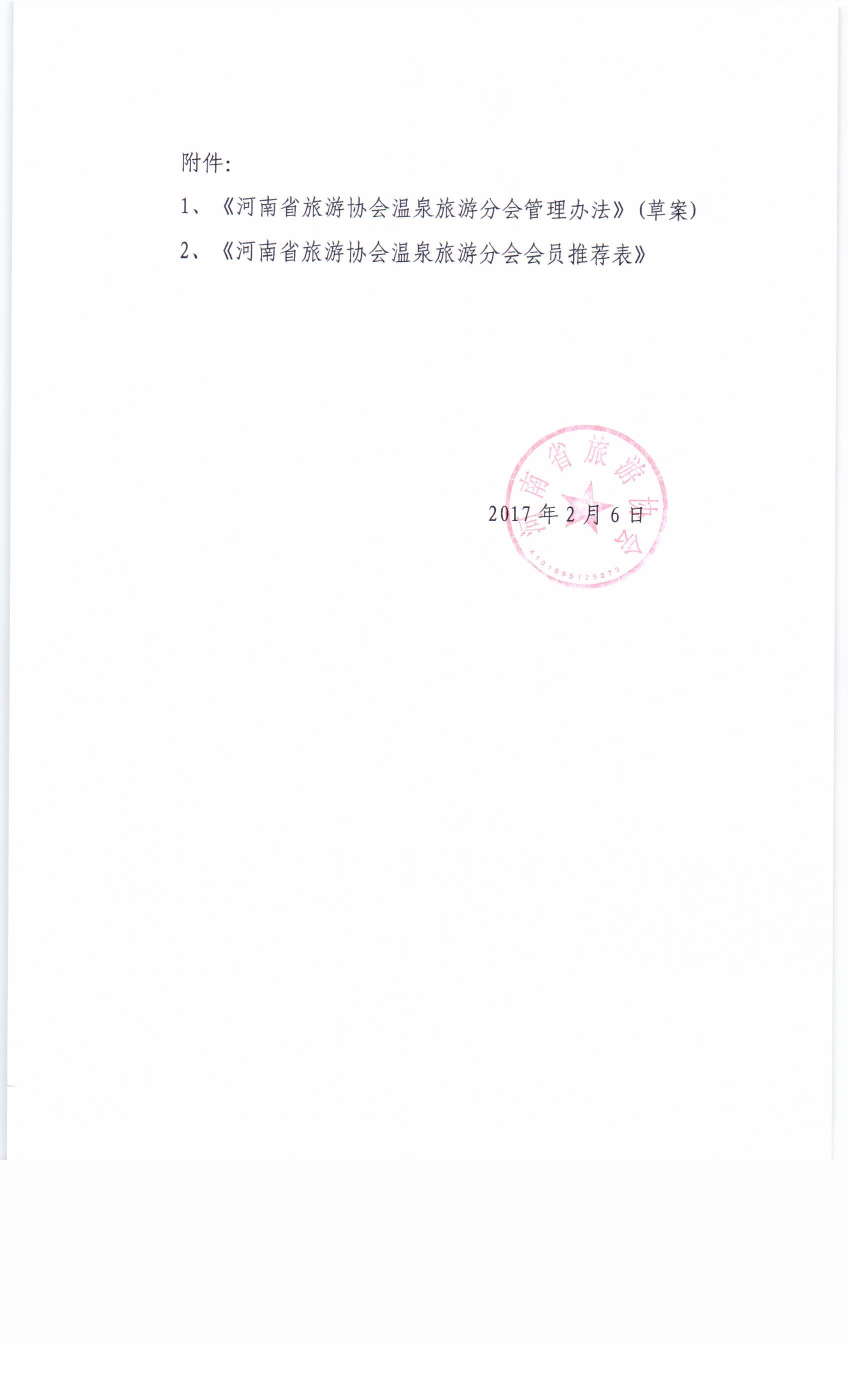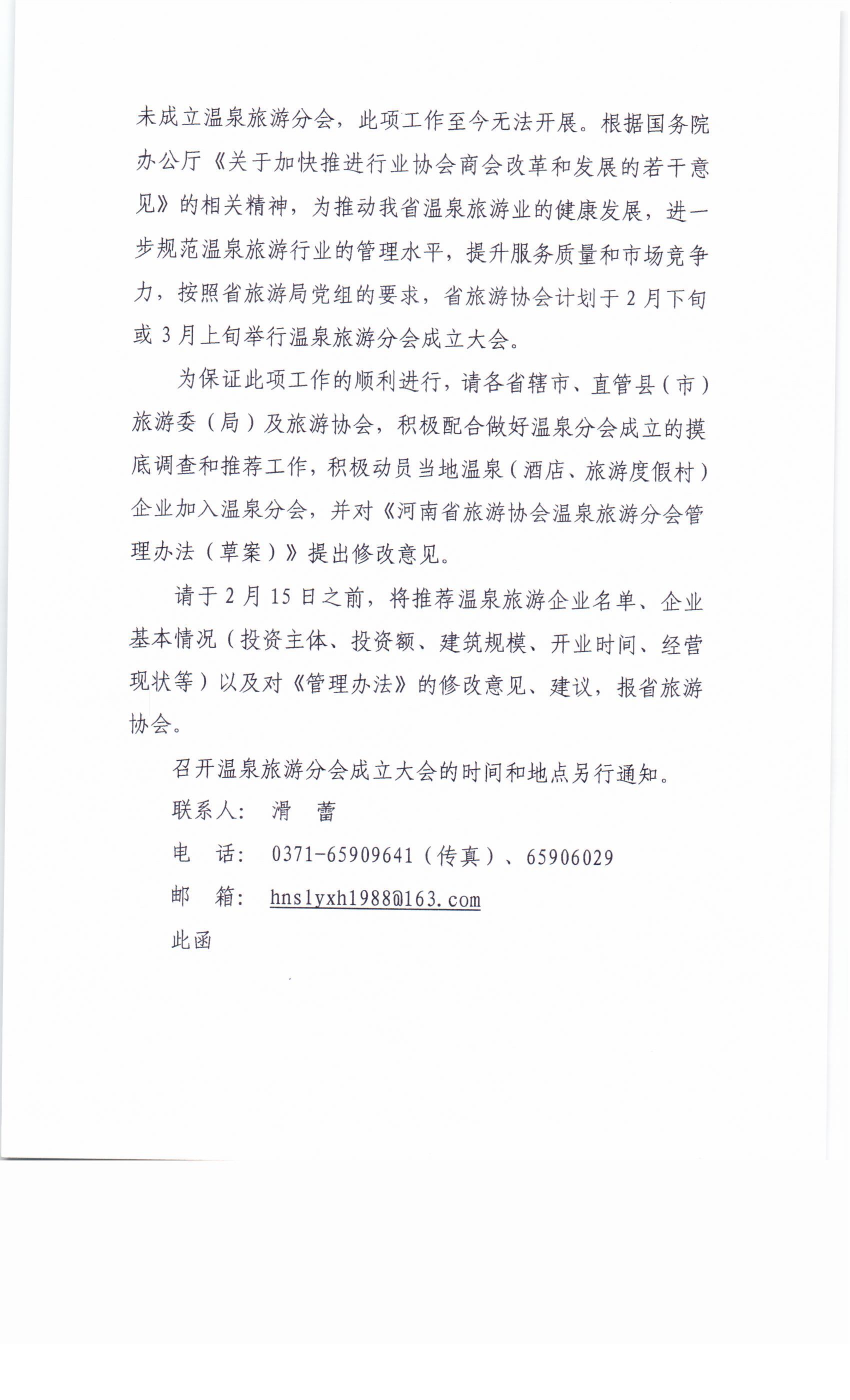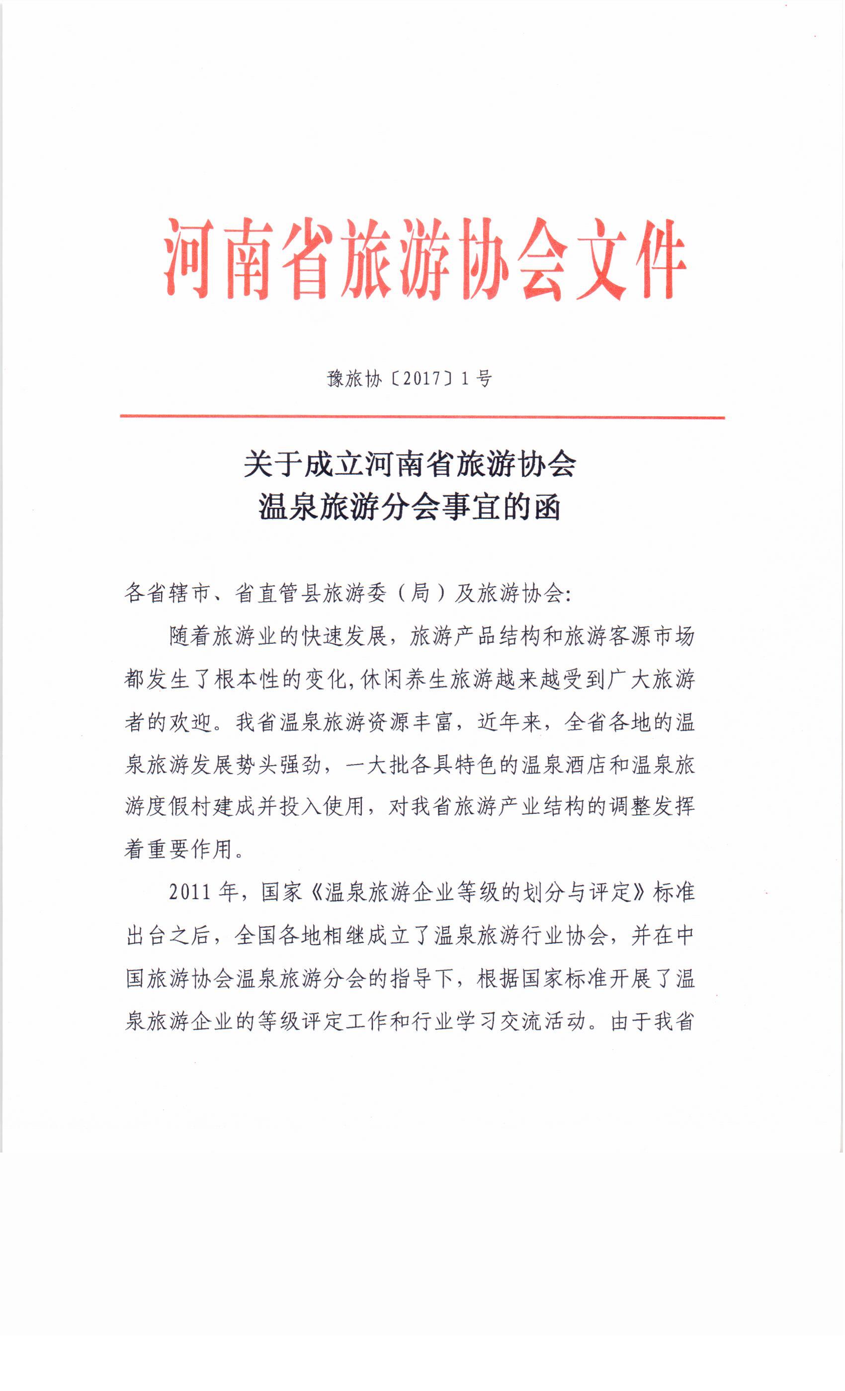 關(guān)于成立河南省旅游協(xié)會溫泉旅游分會事宜的函