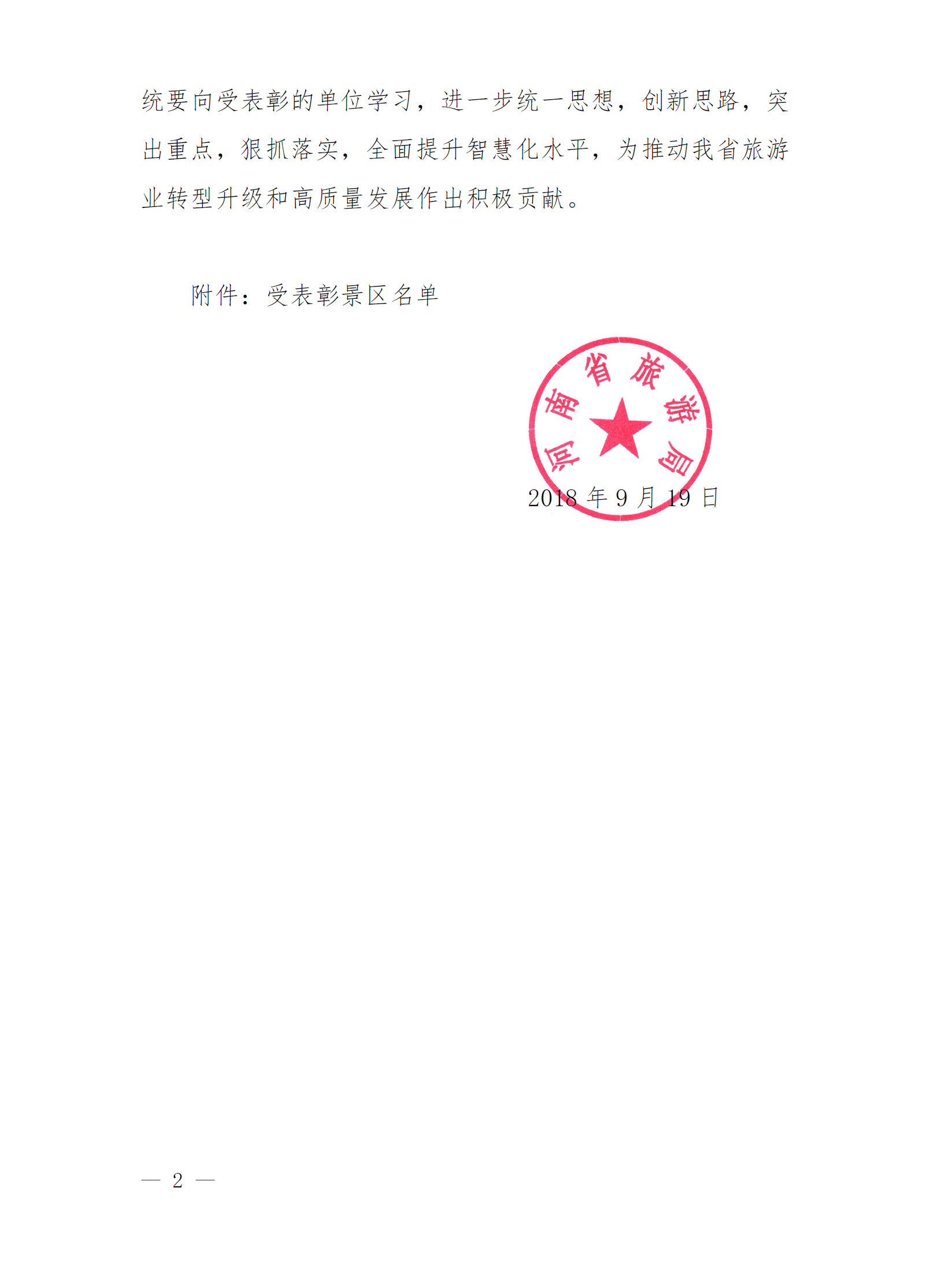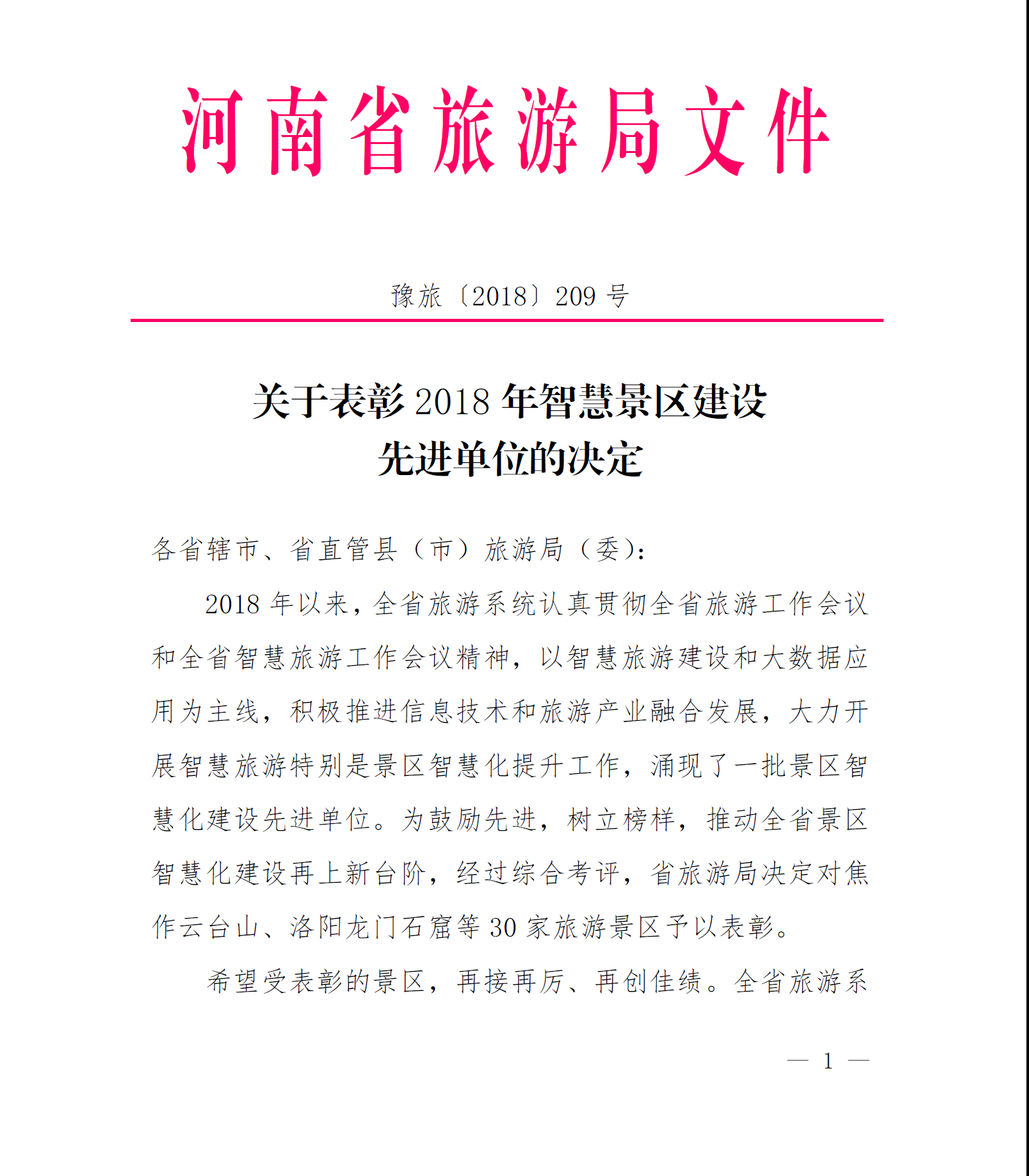 關(guān)于表彰2018年智慧景區(qū)建設(shè)先進(jìn)單位的決定
