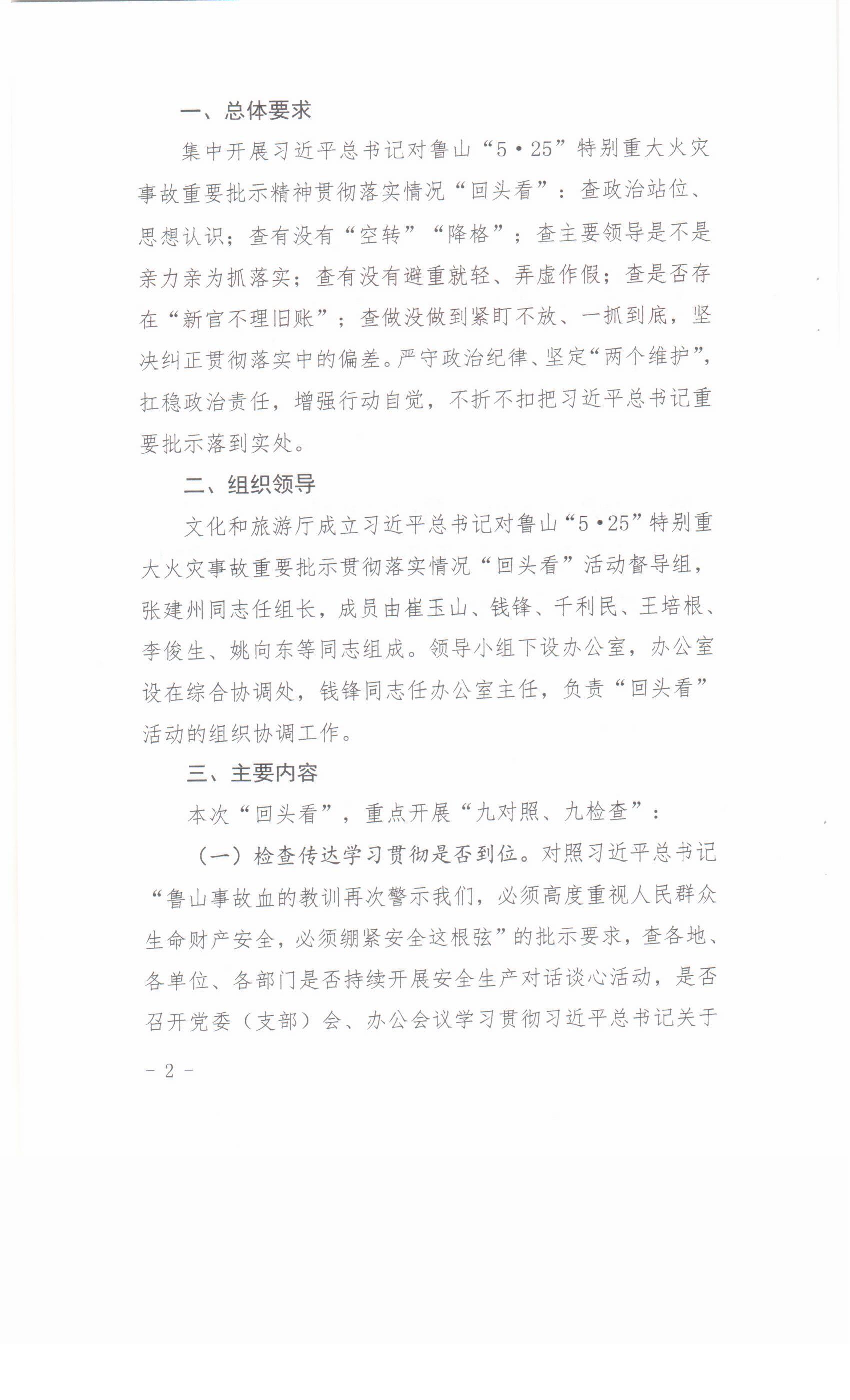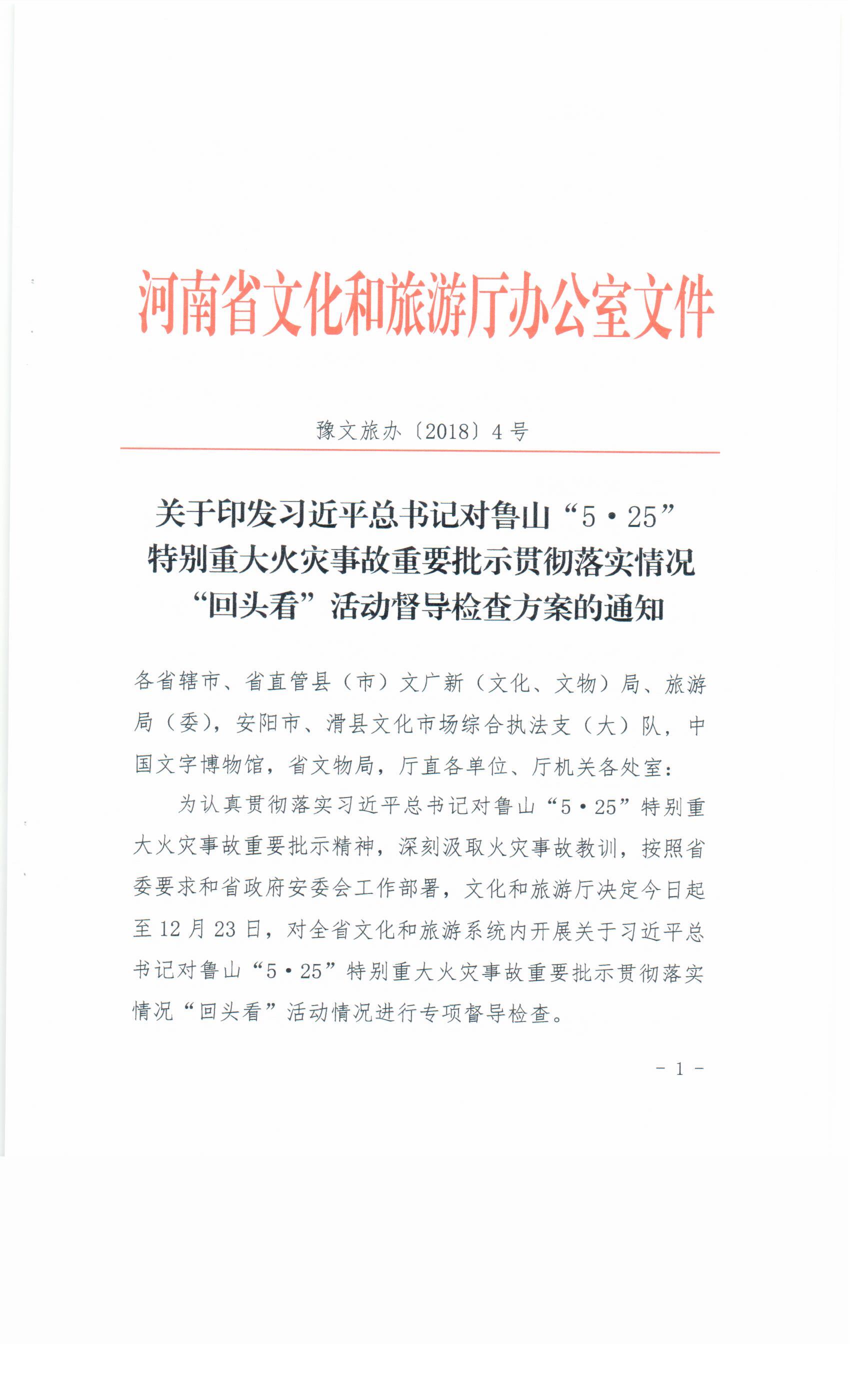關(guān)于印發(fā)習(xí)近平總書記對魯山“5·25”特別重大火災(zāi)事故重要批示貫徹落實(shí)情況“回頭看”活動(dòng)督導(dǎo)檢查方案的通知