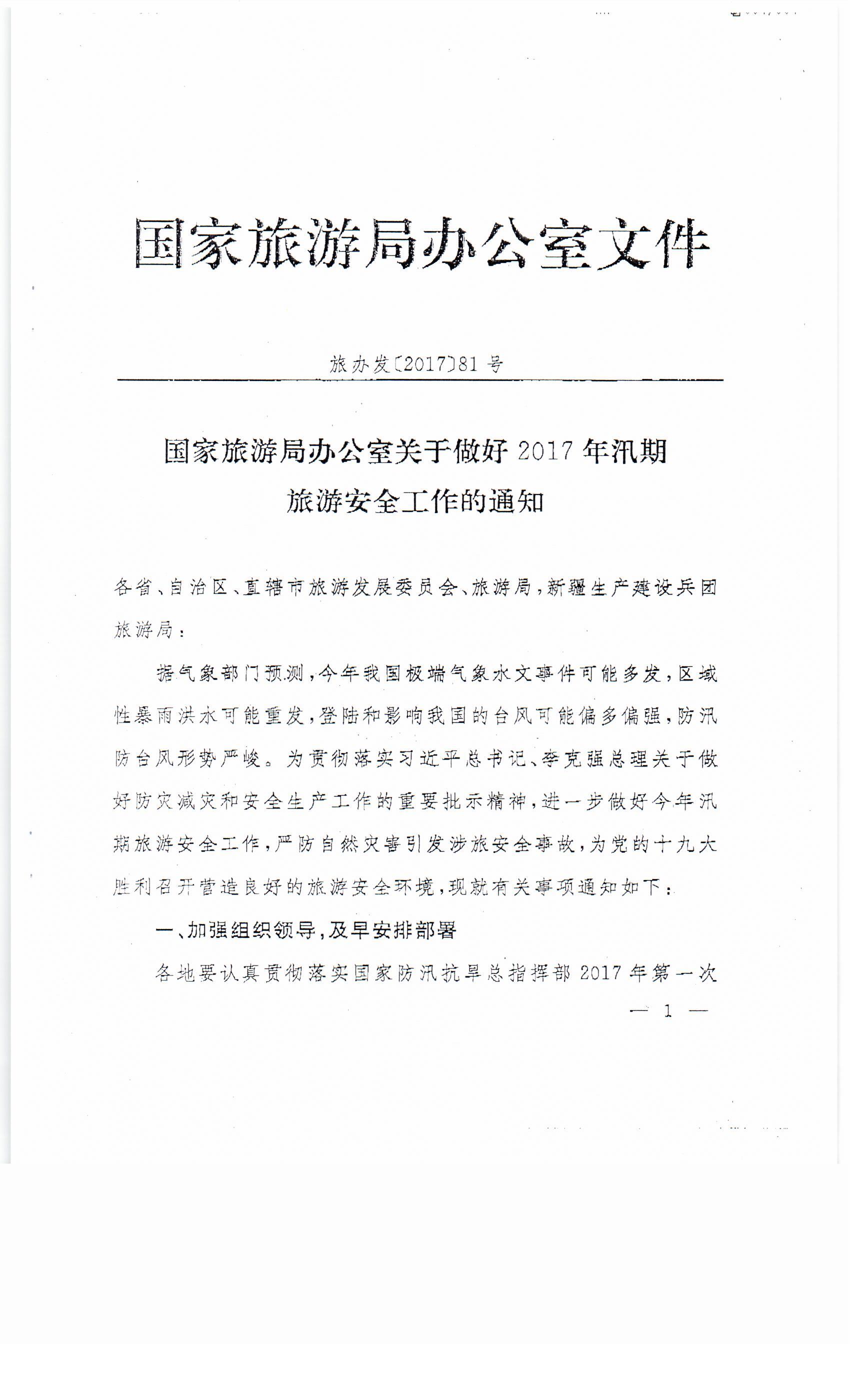 附件:國家旅游局辦公室《關于做好2017年汛期旅游安全工作的通知》