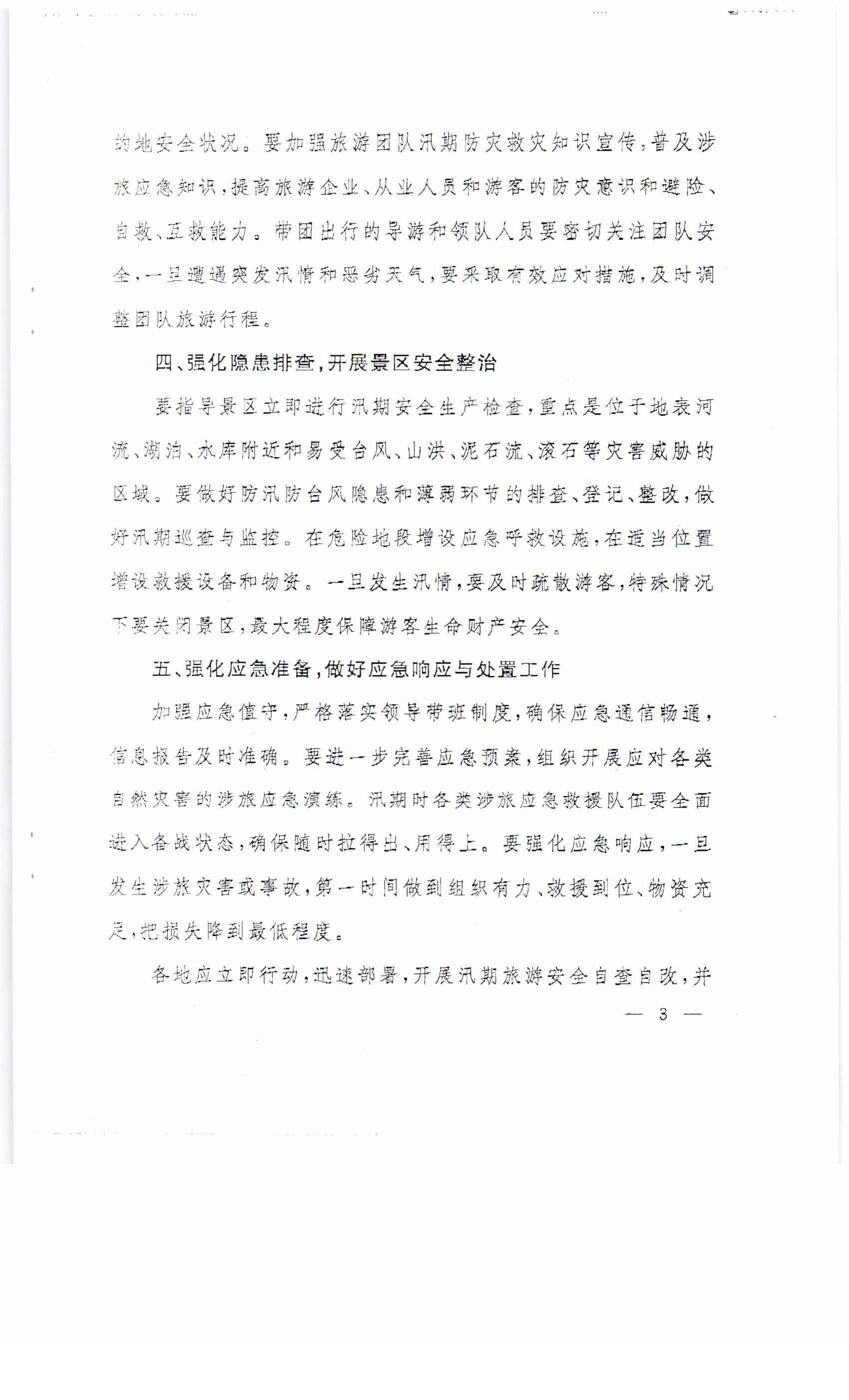 各省轄市,省直管縣(市)旅游局(委): 現(xiàn)將國家旅游局辦公室《關于做好2017年汛期旅游安全工作的通知》轉發(fā)你們,請結合自身實際,抓好貫徹落實。并將自查自改情況與4月24日前報送省旅游局辦公室。 聯(lián)系人:魏緯,電話:0371-65906623,傳真:0371-65909345,郵箱:634044672@qq.com