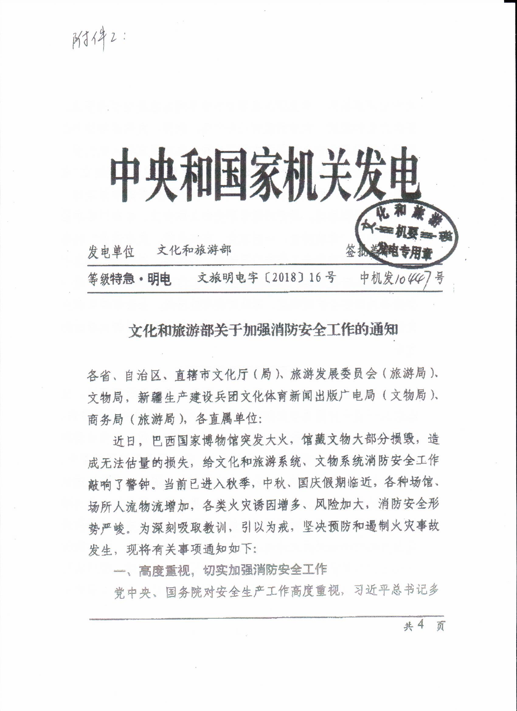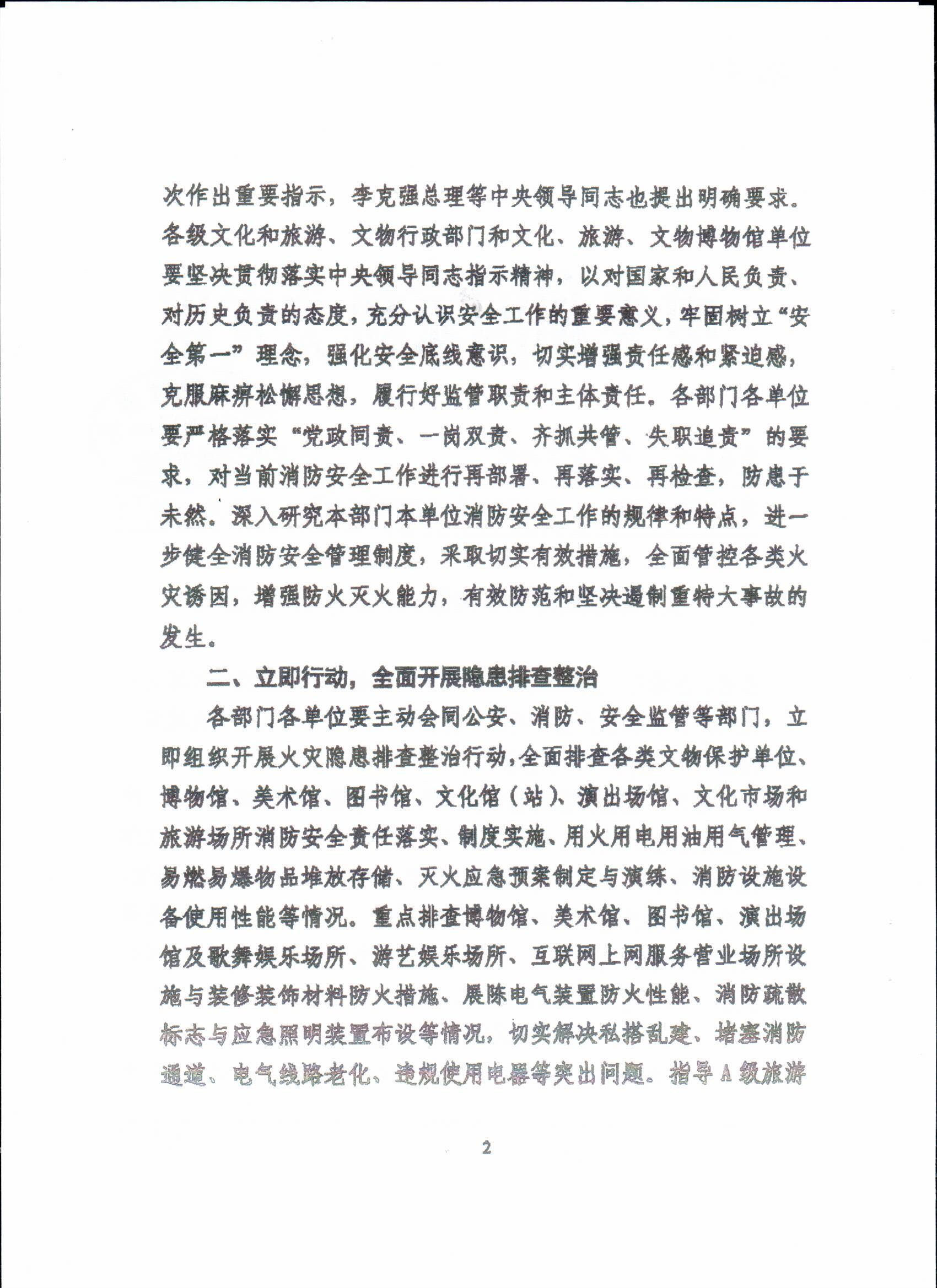 2、文化和旅游部《關(guān)于加強消防安全工作的通知》