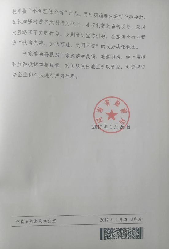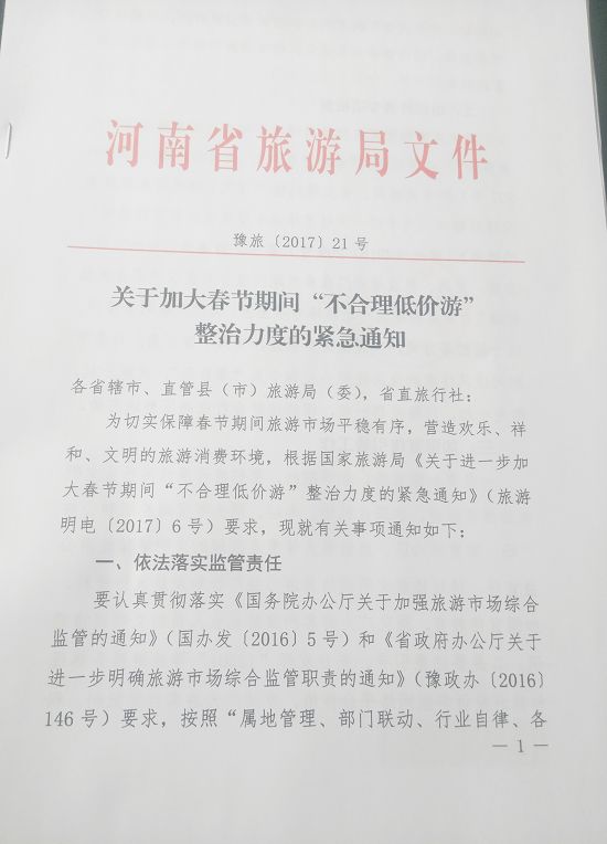 為切實(shí)保障春節(jié)期間旅游市場(chǎng)平穩(wěn)有序,營(yíng)造歡樂(lè)、祥和、文明的旅游消費(fèi)環(huán)境,根據(jù)國(guó)家旅游局《關(guān)于進(jìn)一步加大春節(jié)期間“不合理低價(jià)游”整治力度的緊急通知》(旅游明電[2017]6號(hào))要求,現(xiàn)就有關(guān)事項(xiàng)通知如下: