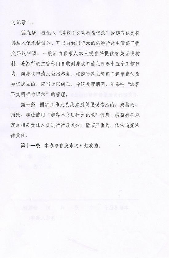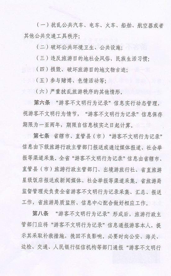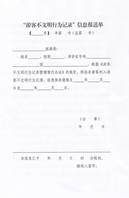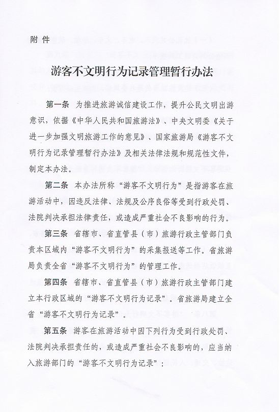 關(guān)于印發(fā)《游客不文明行為記錄管理暫行辦法》的通知