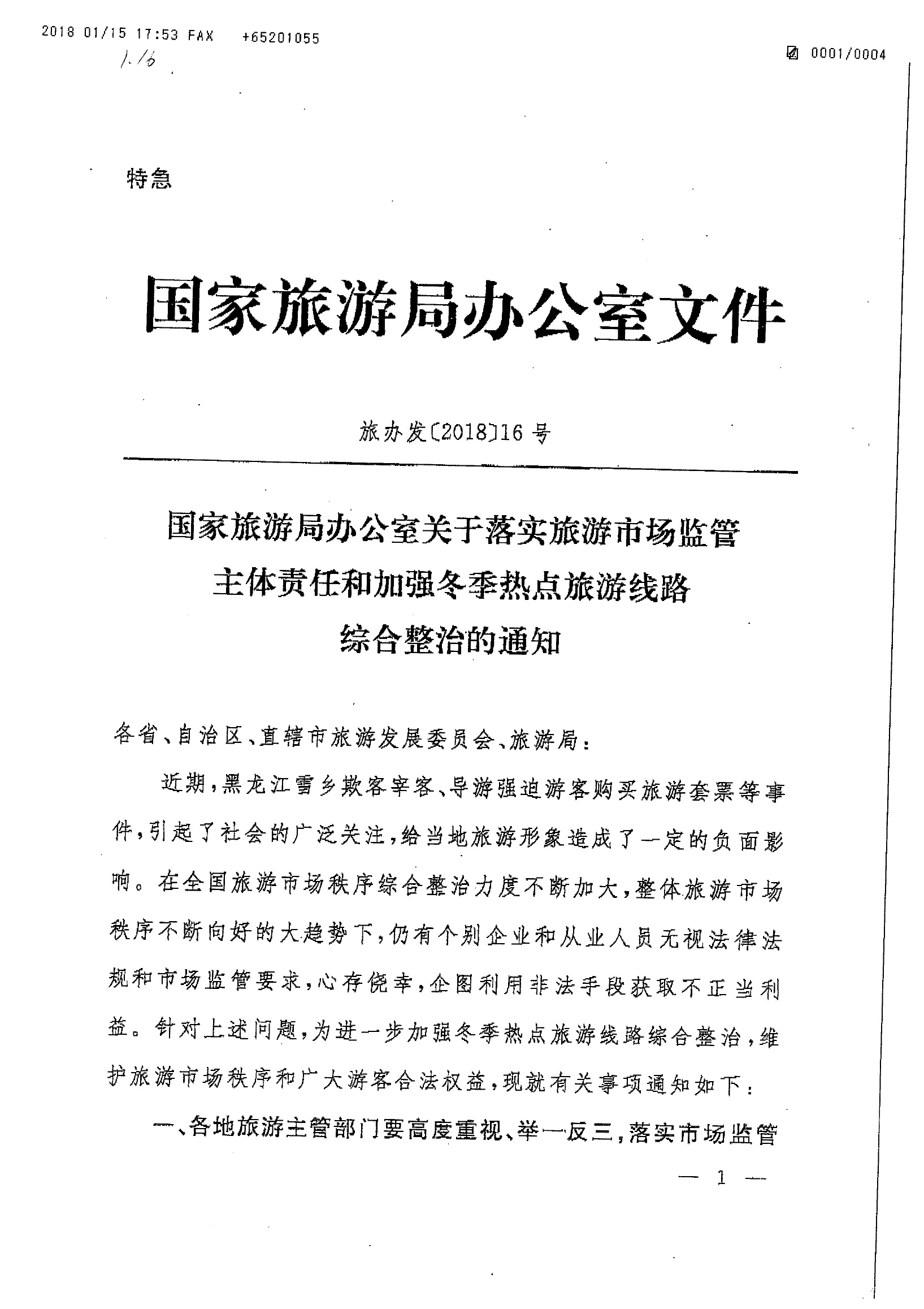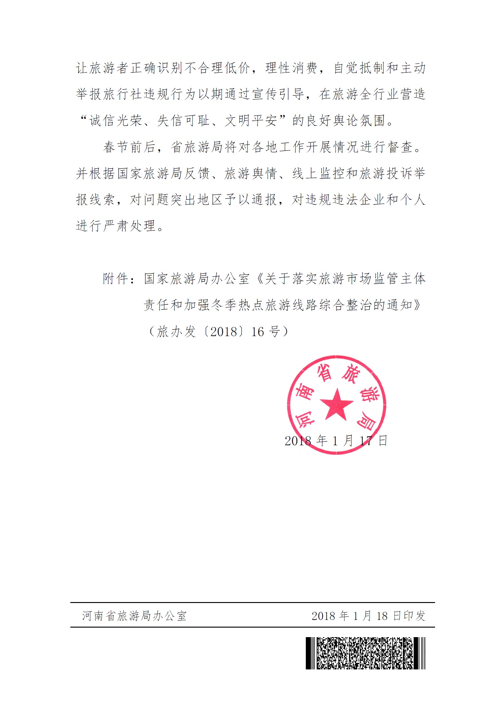 關(guān)于轉(zhuǎn)發(fā)國家旅游局辦公室《關(guān)于落實旅游市場監(jiān)管主體責任和加強冬季熱點旅游線路綜合整治的通知》的通知