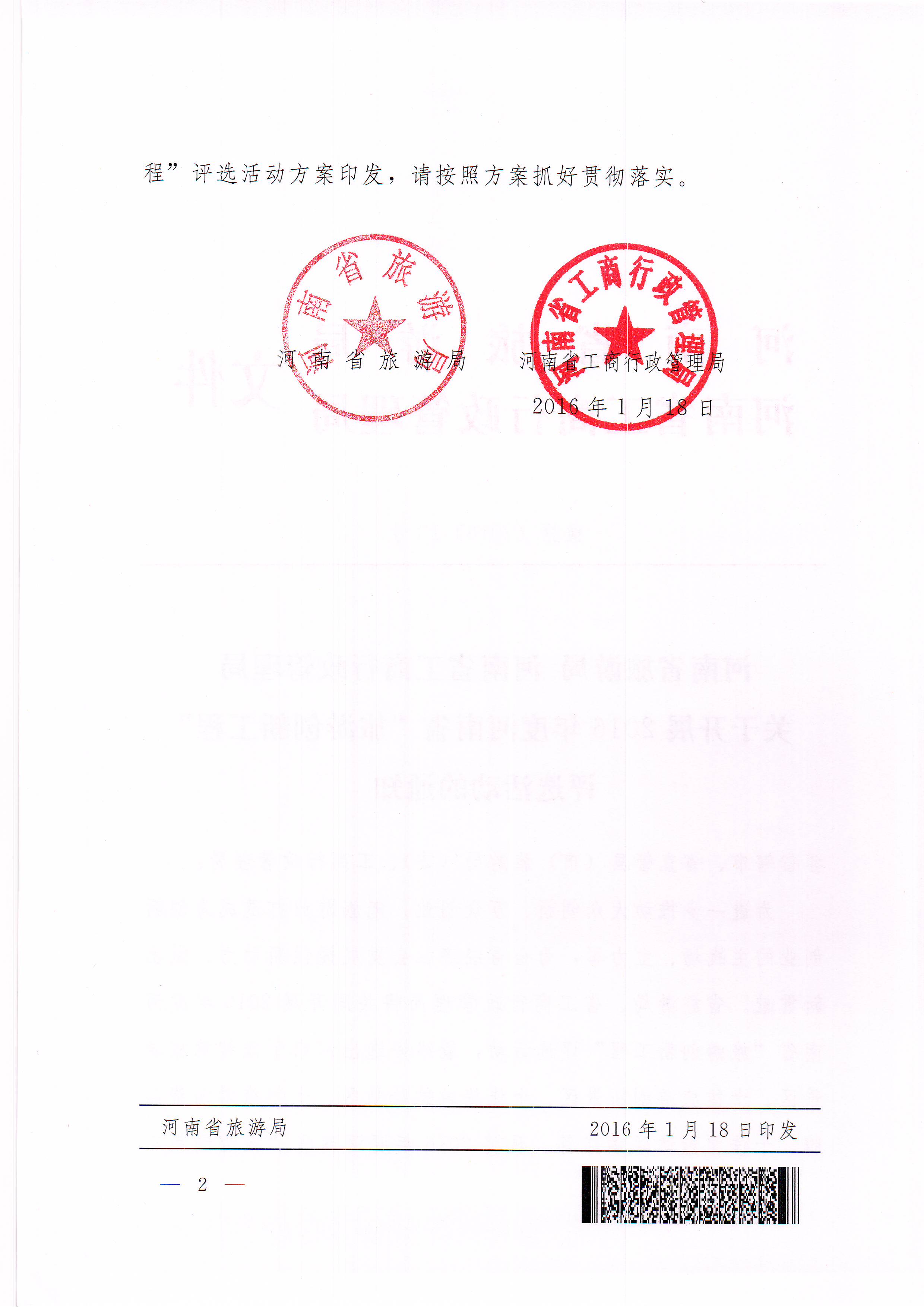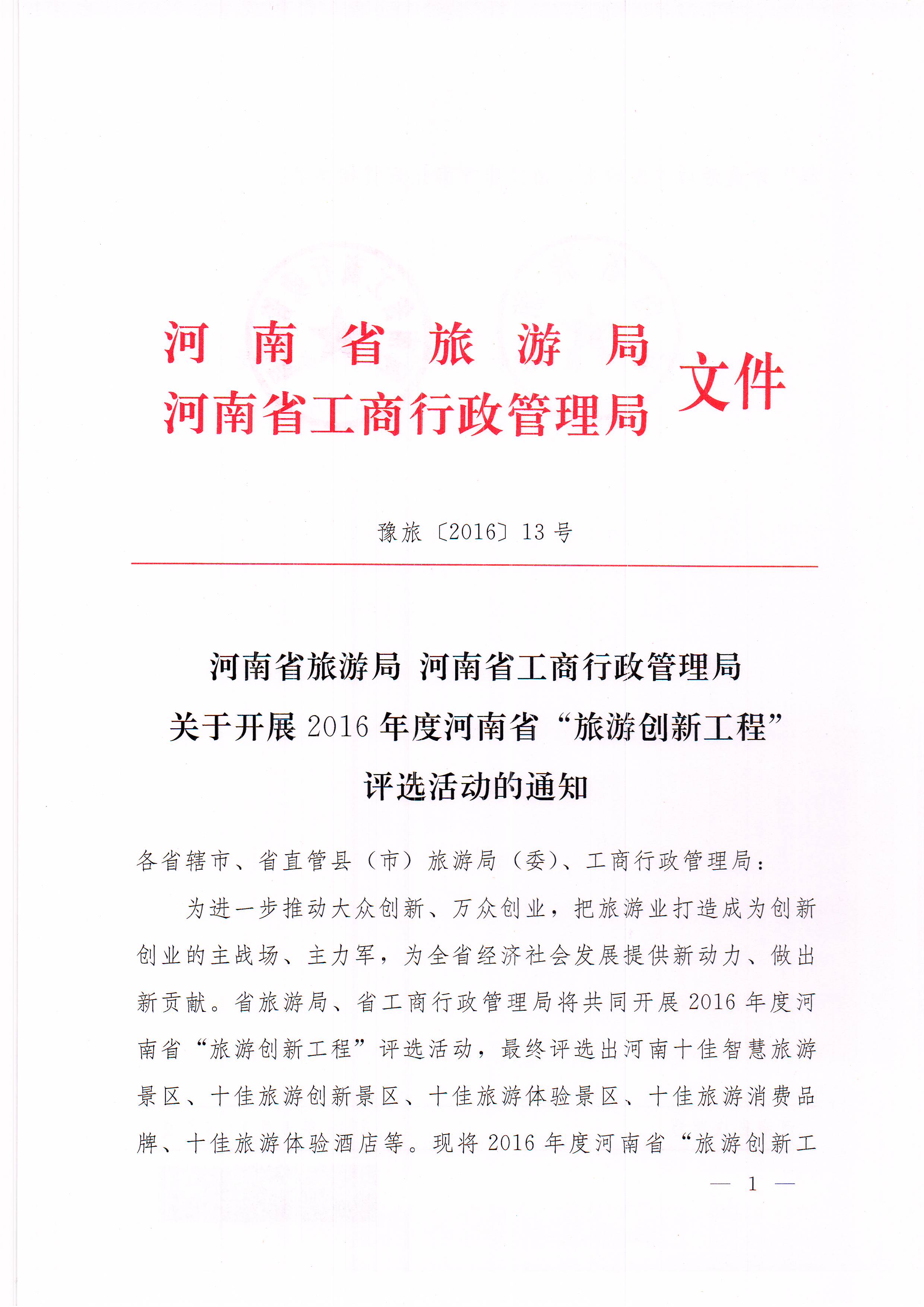 河南省旅游局 河南省工商行政管理局關(guān)于開(kāi)展2016年度河南省“旅游創(chuàng)新工程”評(píng)選活動(dòng)的通知