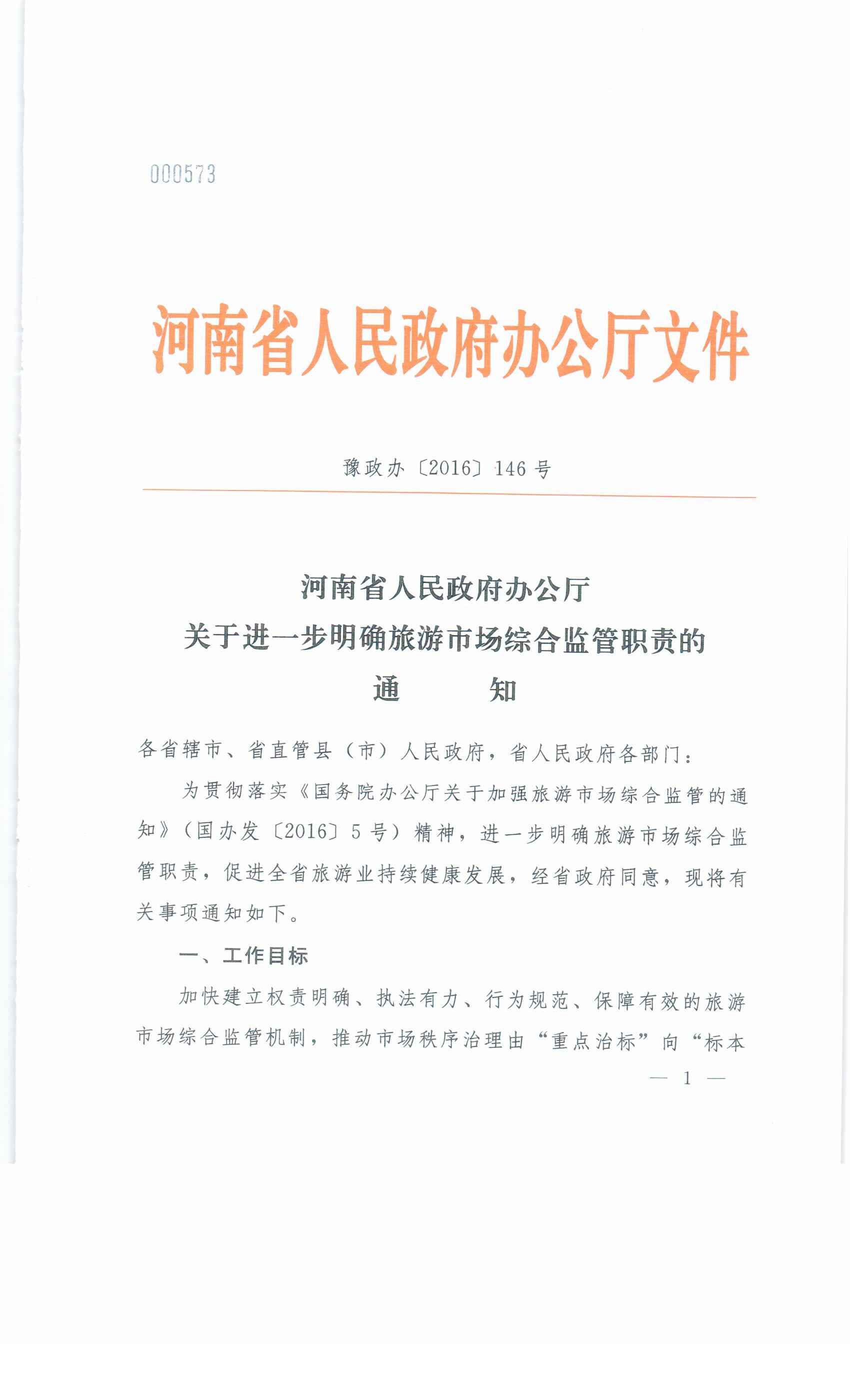 河南省人民政府辦公廳關(guān)于進(jìn)一步明確旅游市場綜合監(jiān)管職責(zé)的通知