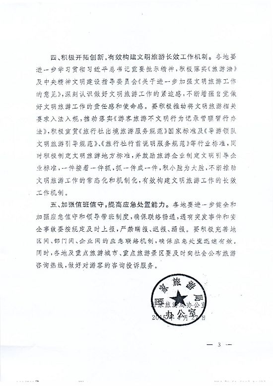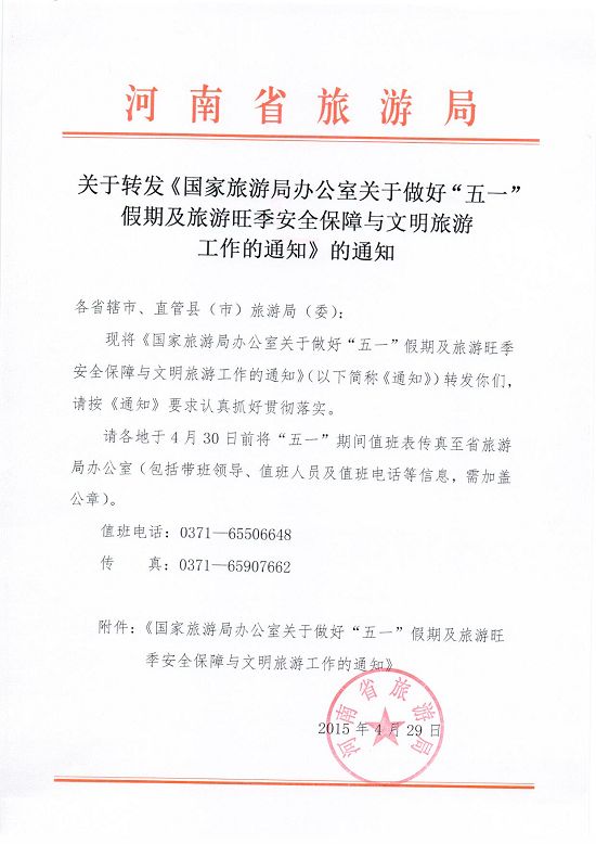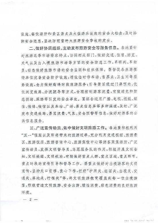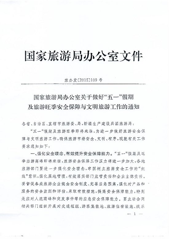 關(guān)于轉(zhuǎn)發(fā)《國家旅游局辦公室關(guān)于做好“五一”假期及旅游旺季安全保障與文明旅游