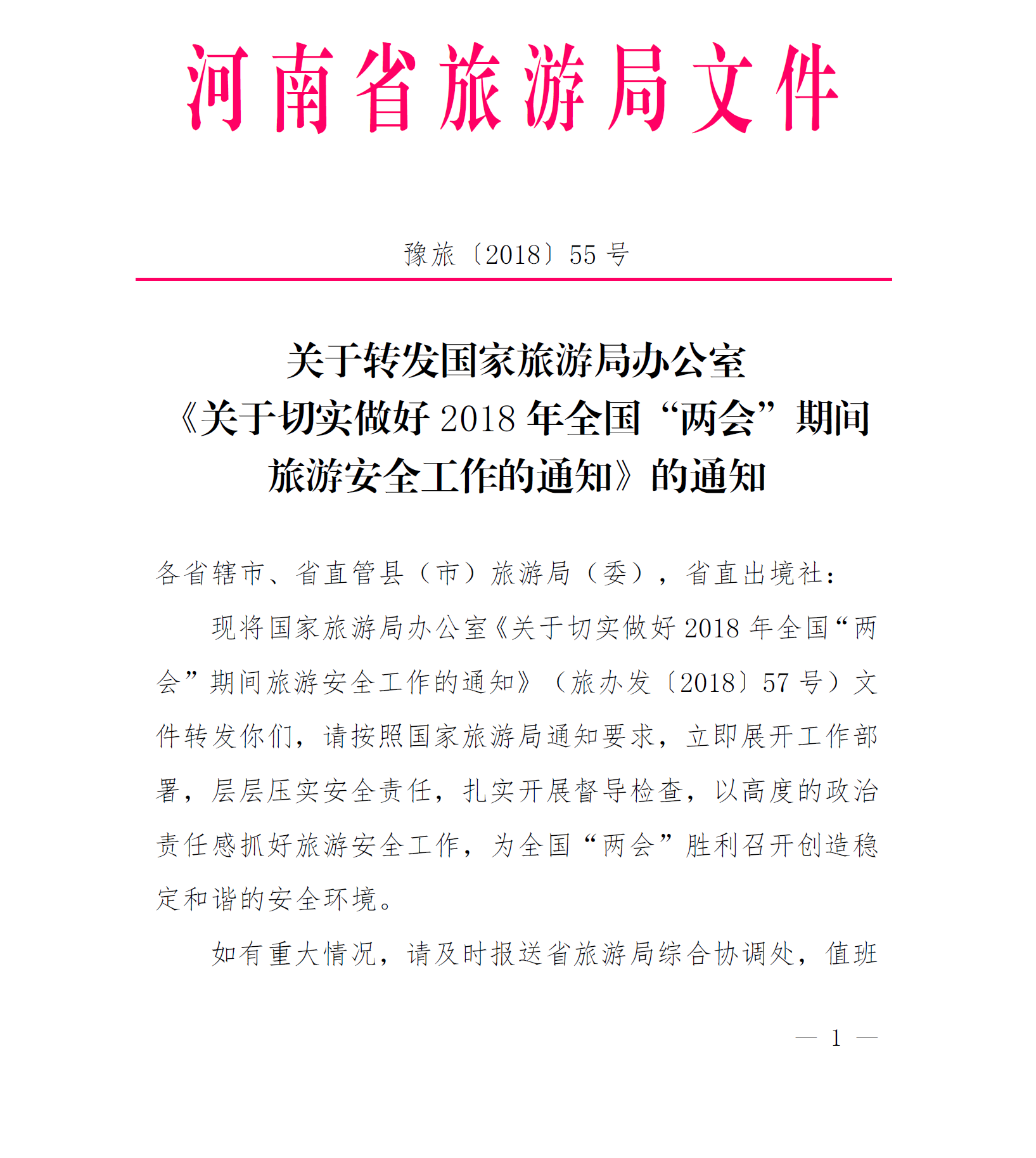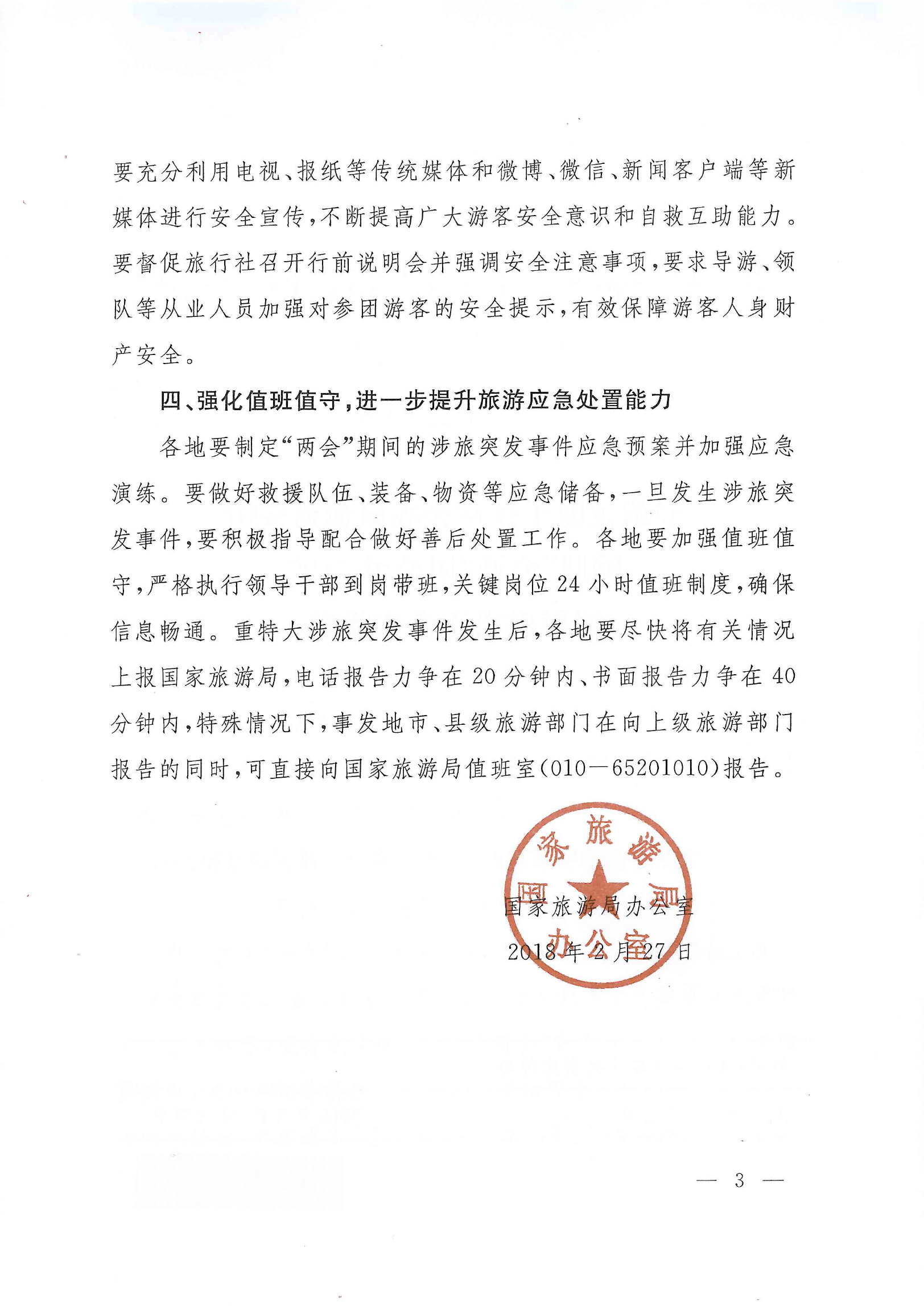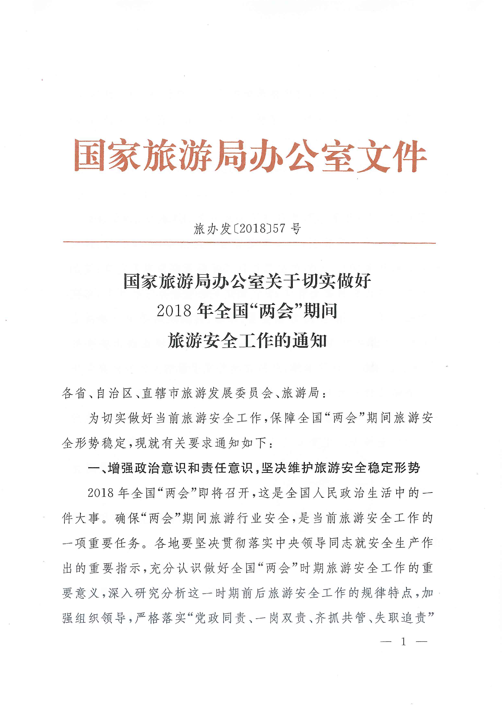 關(guān)于轉(zhuǎn)發(fā)國家旅游局辦公室《關(guān)于切實(shí)做好2018年全國“兩會(huì)”期間旅游安全工作的通知》的通知