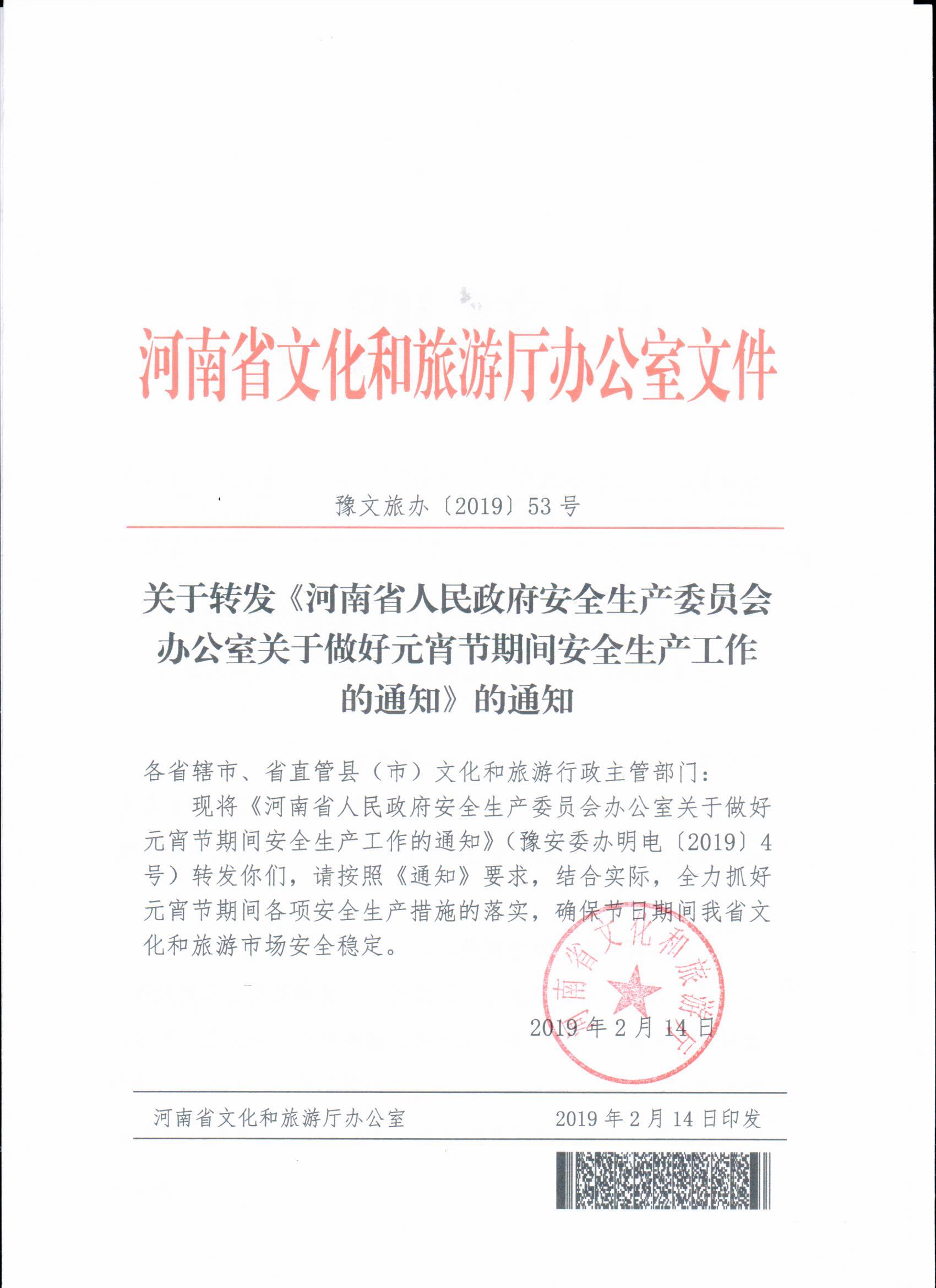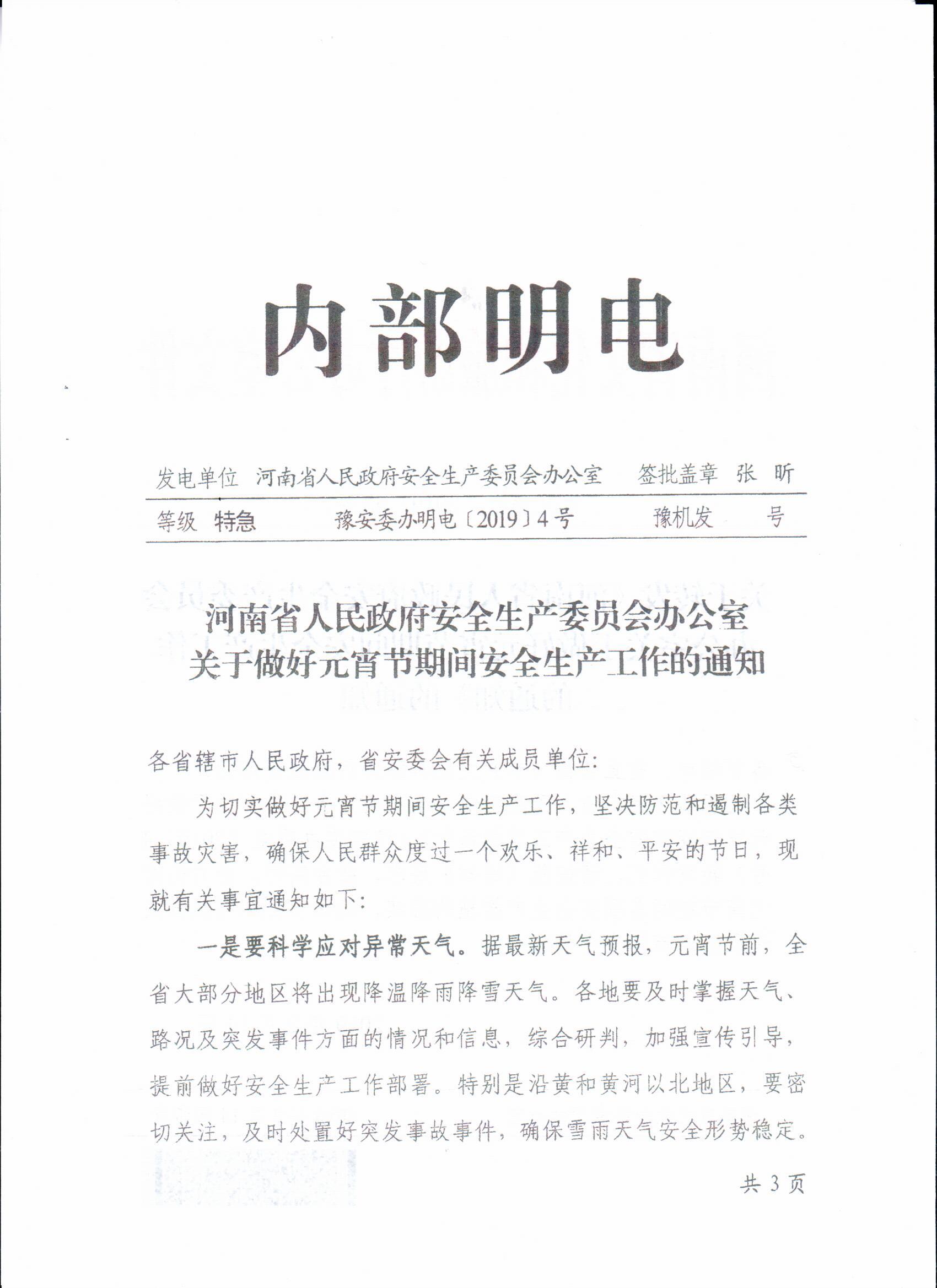 關(guān)于轉(zhuǎn)發(fā)《河南省人民政府安全生產(chǎn)委員會辦公室關(guān)于做好元宵節(jié)期間安全生產(chǎn)工作的通知》的通知