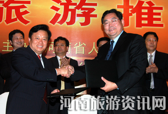 河南省旅游局局長蘇福功、陜西省旅游局局長董憲民簽訂《旅游合作協(xié)議》