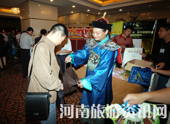 河南旅游推介團發(fā)放宣傳材料