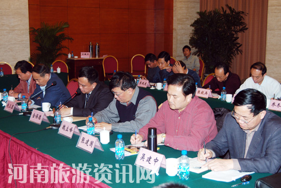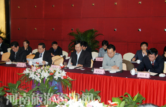 11月3日下午,調(diào)研組在鄭州舉行座談會(huì),詳細(xì)了解河南省旅游業(yè)發(fā)展?fàn)顩r,并就如何全面貫徹落實(shí)科學(xué)發(fā)展觀,推動(dòng)中國旅游業(yè)全面、協(xié)調(diào)、可持續(xù)發(fā)展進(jìn)行探討。河南省政府副省長宋璇濤,省政府副秘書長寇武江,省旅游局副局長李亞白、紀(jì)檢組長周保健、副局長張鳳有,以及省內(nèi)部分旅游企業(yè)負(fù)責(zé)人參加了座談會(huì)。
