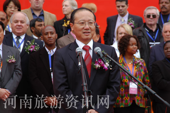 國家旅游局局長邵琪偉在致辭中向河南9800萬人民和為本次交易會付出辛苦的工作人員表示感謝。他說,本屆旅交會在河南舉辦是一個正確的選擇,他祝愿本屆旅交會能夠為舉辦地帶來新的商機,為所有參展商帶來新的合作伙伴,使所有參會朋友對中國旅游和河南旅游有一個全新的體驗。