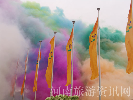 一時間,主席臺上一座標有旅交會會徽的金色地球旋轉(zhuǎn)起來,會展中心門前廣場鼓樂齊鳴,掌聲四起,五彩煙幕騰空而起,正式拉開旅交會的序幕。