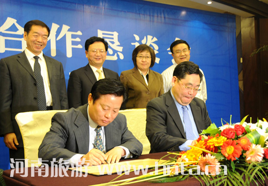 會(huì)上, 豫陜兩省旅游城市和旅游企業(yè)分別簽訂了旅游合作協(xié)議。蘇福功局長(zhǎng)和董憲民局長(zhǎng)簽訂了鄭西高鐵開(kāi)通后進(jìn)一步加強(qiáng)旅游合作的協(xié)議。