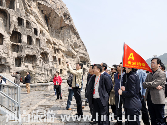 在全國(guó)首批5A級(jí)旅游景區(qū)龍門(mén)石窟,壯觀精美的佛雕藝術(shù)讓代表們嘖嘖稱(chēng)嘆,流連忘返。